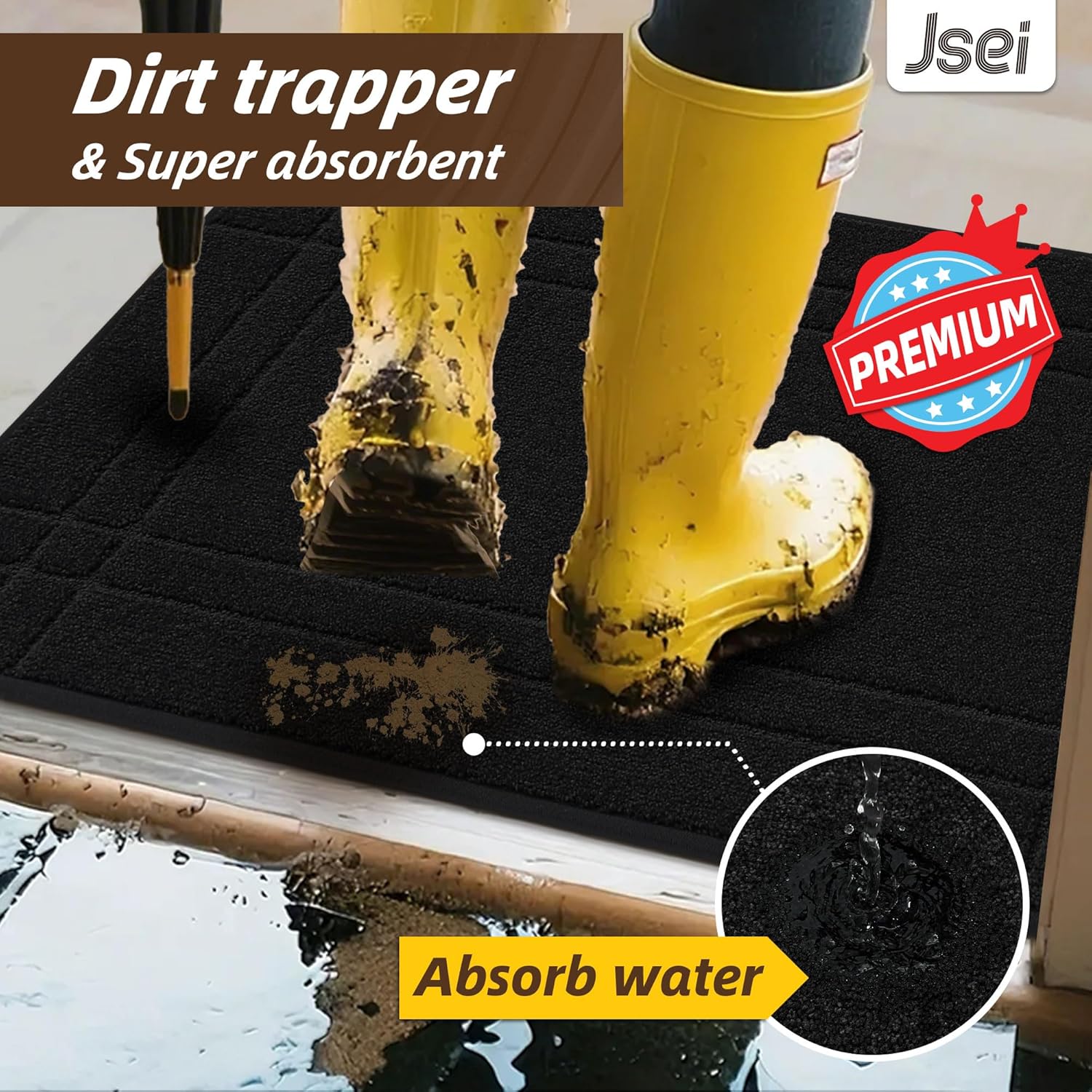 JSEI Entryway Rugs Doormat 20"x32", Non-Slip Dirt Trapper Door Mats Indoor, Washable Absorbent and Stain Resist Welcome Floor Mat for Front Door, Dog Door Mat, Muddy Wet Shoes & Paws, Black
