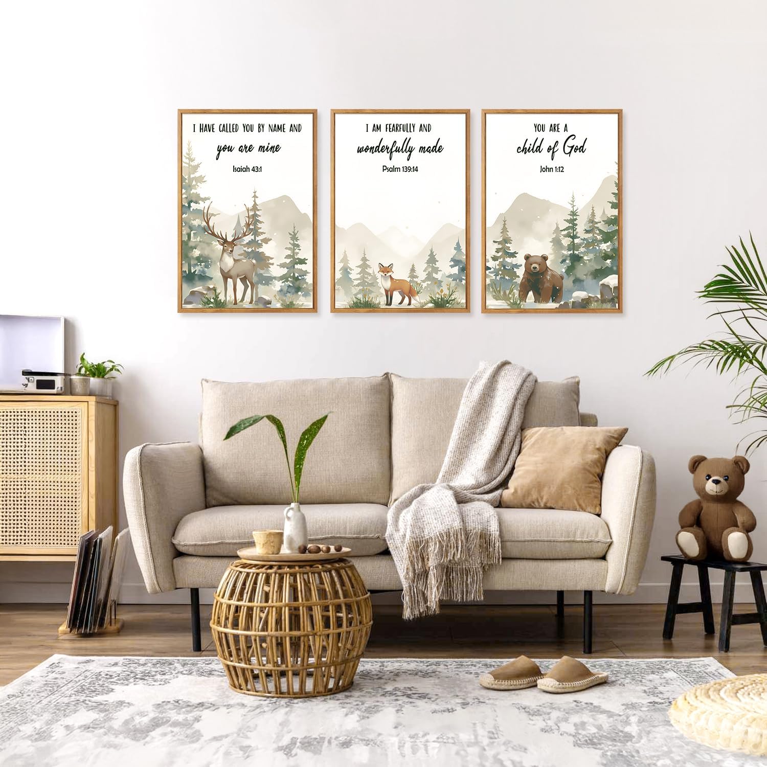 - 【Christian Nursery Wall Art】Transform your little one's space into a serene and loving environment with Woodland Nursery Decor.This beautiful nursery wall art collection features charming baby animals and uplifting bible verses, perfect for creating a Christian nursery that inspires faith and imagination