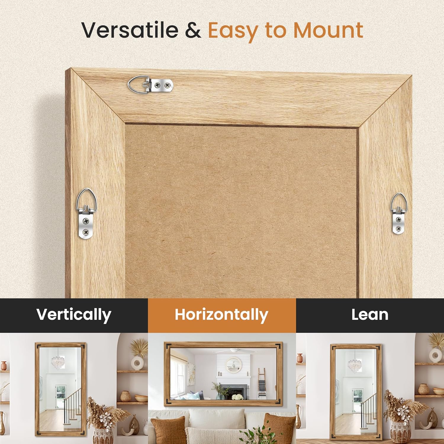 - High-Quality Craftsmanship: Our mirror frame is crafted from premium, solid wood, ensuring its durability and longevity. Built to last, this mirror features a premium 5mm silver-backed glass that ensures HD clarity with no distortion. The explosion-proof and scatter-prevention design provides added safety, making it a reliable choice for any home.