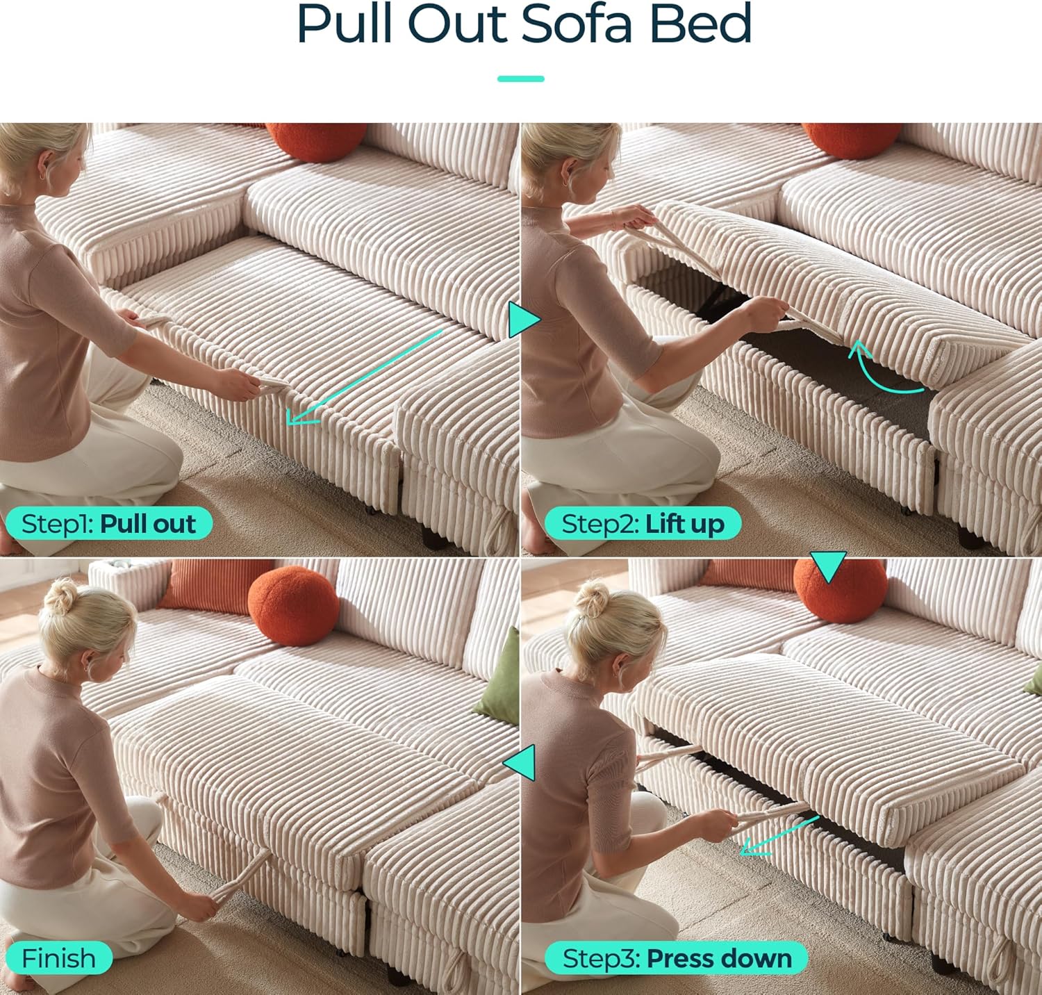 - Comfy Plush Corduroy Fabric: The sleeper sofa is made of high quality plush corduroy fabric, cloud-like softness, comfortable and breathable, the surface of the pile is rich and delicate and soft, its unique texture adds texture to the sofa bed, luxurious, practical and easy to clean, it still maintains a neat appearance after long term use, perfect for families, pets and daily use