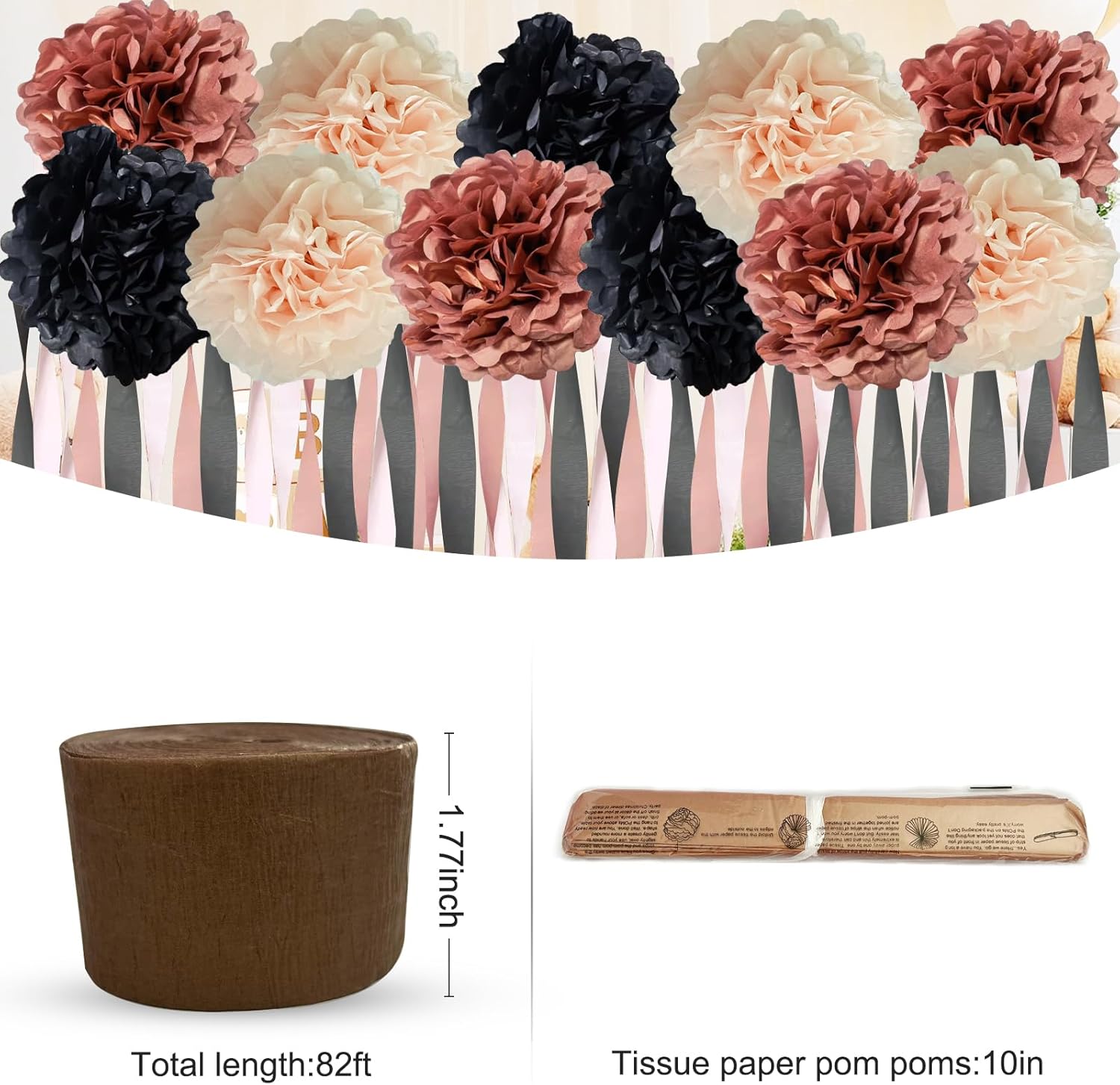 Black Pink Party Streamers Decorative Paper Pompoms for Sweet Cool Party Background, Birthday, Bachelor Party, Baby Shower, Ceiling Wall Hanging