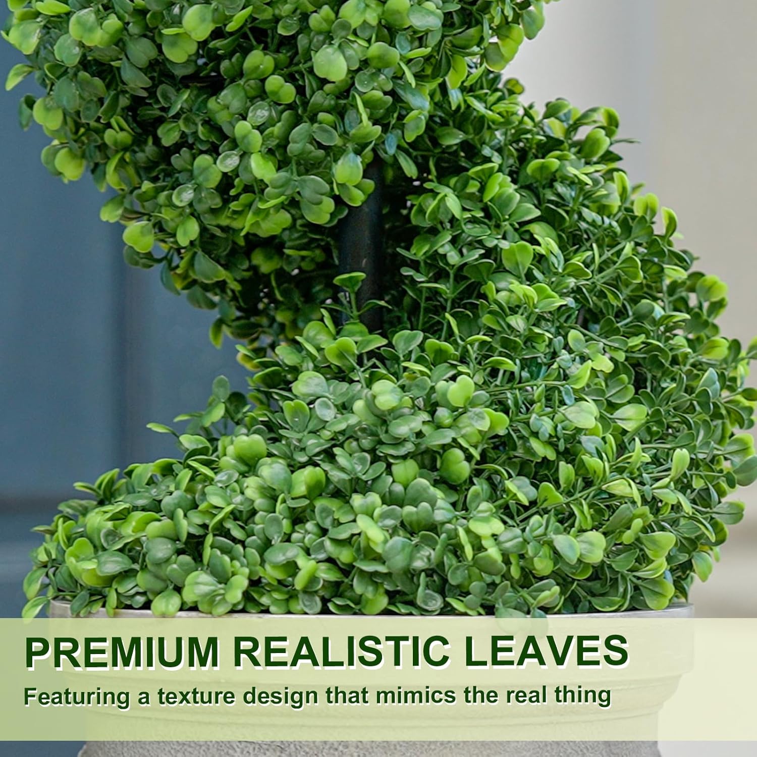 - β Lifelike Artificial Plant - Realistic looking plant with vibrant colors, and true to life texture details.The Spiral Boxwood Topiary trees artificial indoor are lifelike, when it is windy, it can sway in the breeze, creating a natural and comfortable atmosphere, bringing you comfort and adding color to your room.