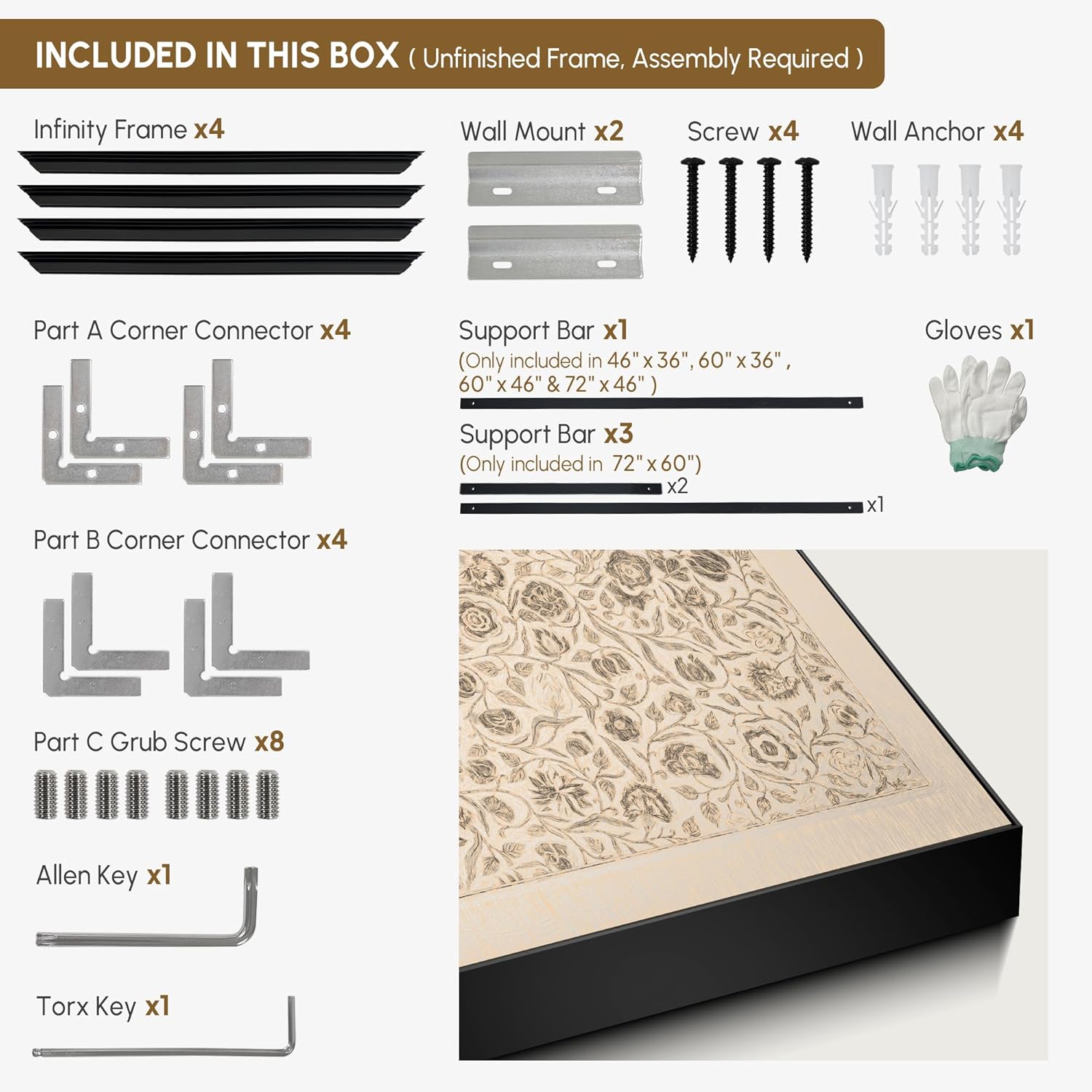 - Assembly Required: The artwork comes with the frame components unassembled. Don¡¯t worry ¡ª setup is straightforward and tool-friendly. For best results and accurate alignment, we recommend two people to ensure a smooth assembly and a stable, secure wall mount.