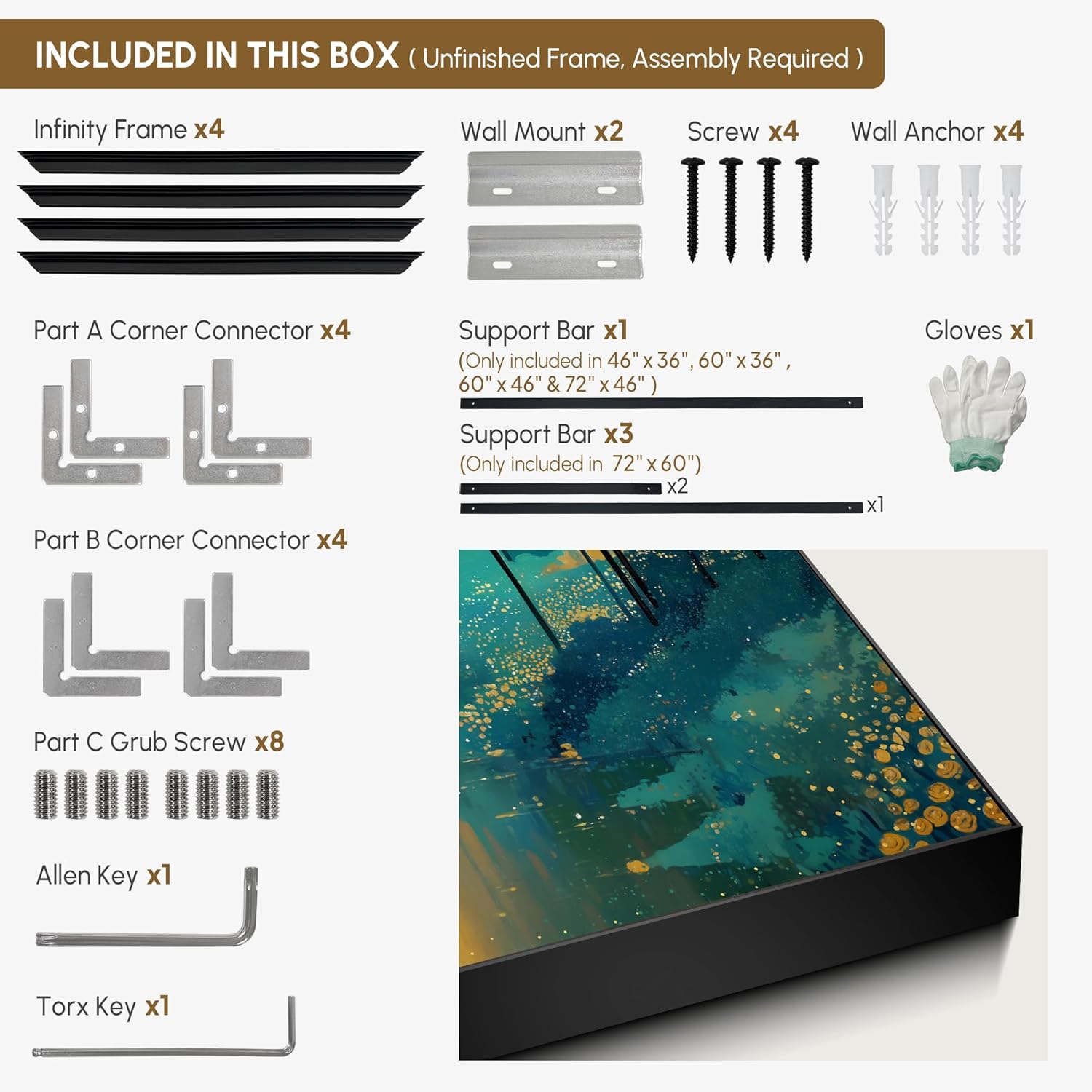 - Assembly Required: The artwork comes with the frame components unassembled. Don¡¯t worry ¡ª setup is straightforward and tool-friendly. For best results and accurate alignment, we recommend two people to ensure a smooth assembly and a stable, secure wall mount.