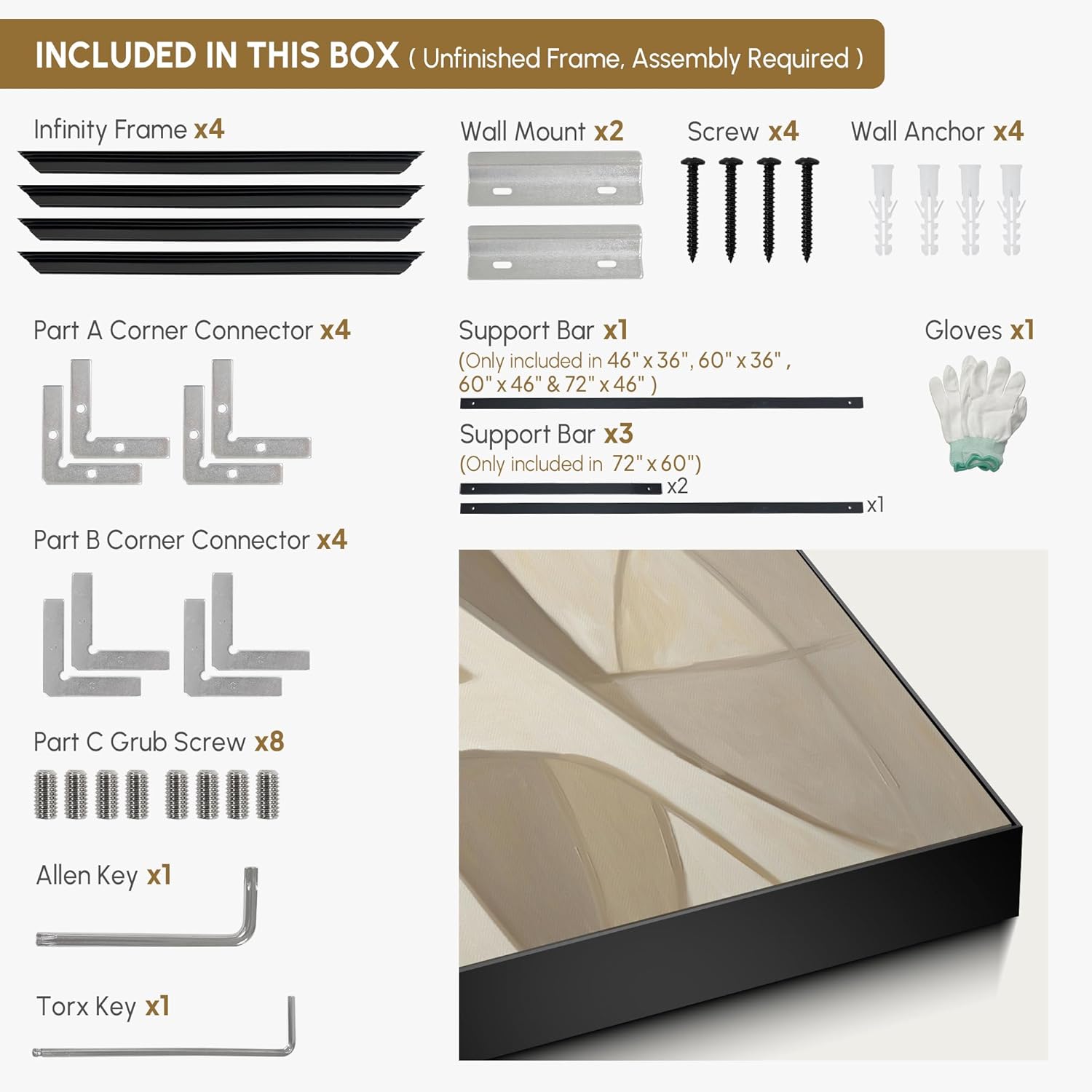 - Assembly Required: The artwork comes with the frame components unassembled. Don’t worry — setup is straightforward and tool-friendly. For best results and accurate alignment, we recommend two people to ensure a smooth assembly and a stable, secure wall mount.