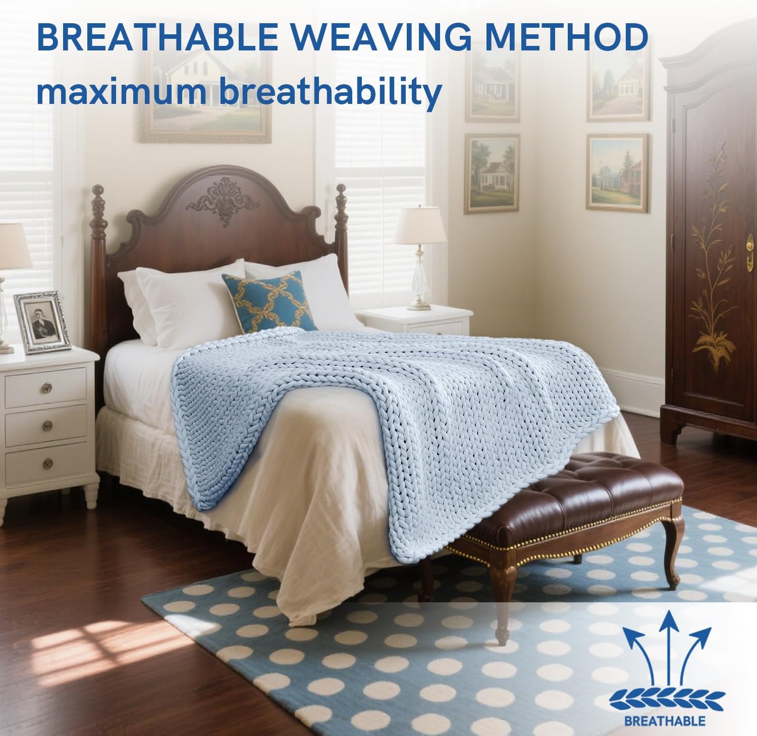 YnM Cooling Chunky Throw Blanket, Medium-Weight, Hand Knitted, Skin Friendly, Ventilated and Breathable, Machine Washable, Home Décor Piece for Couch, Sofa and Bed (Azure Blue, 60x80 Inch)