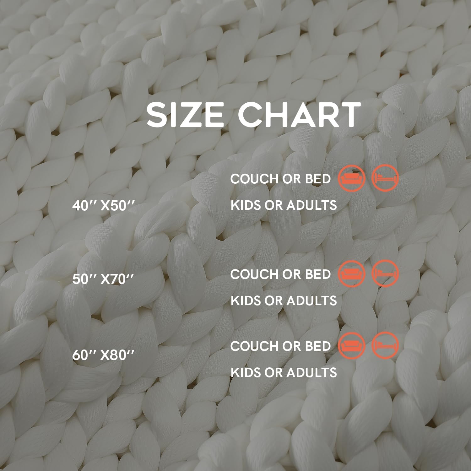 - [Comfortable] This blanket is knitted with a medium weight chunky yarn and matches the YNM Weighted Blanket's embracing and cuddly sensation. Therefore, it is cozy, pleasant, and portable. Whether it's a sofa or a bed, indoors or outdoors, camping or traveling, it can follow you peacefully through all four seasons. Additionally, it is a terrific friend for your pet while you are not present. It is safe and does not shed during usage