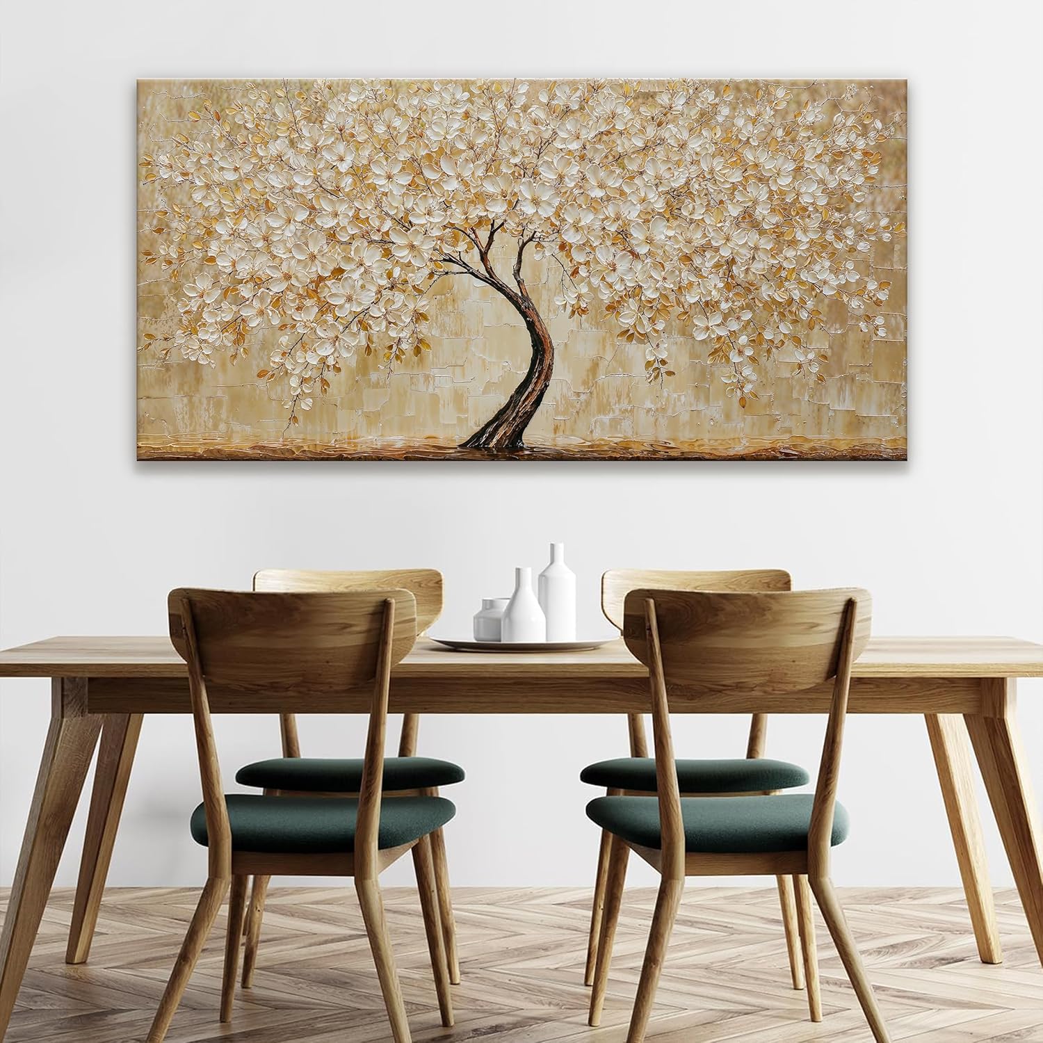 TAIJXAGSG Canvas Wall Art Decor Gold Tree Flower Wall Art Gold Tree Of Life Abstract Wall Decor Painting Pictures Botanical Wall Art For Living Room Bedroom Home Office Artwork 24"X 48"