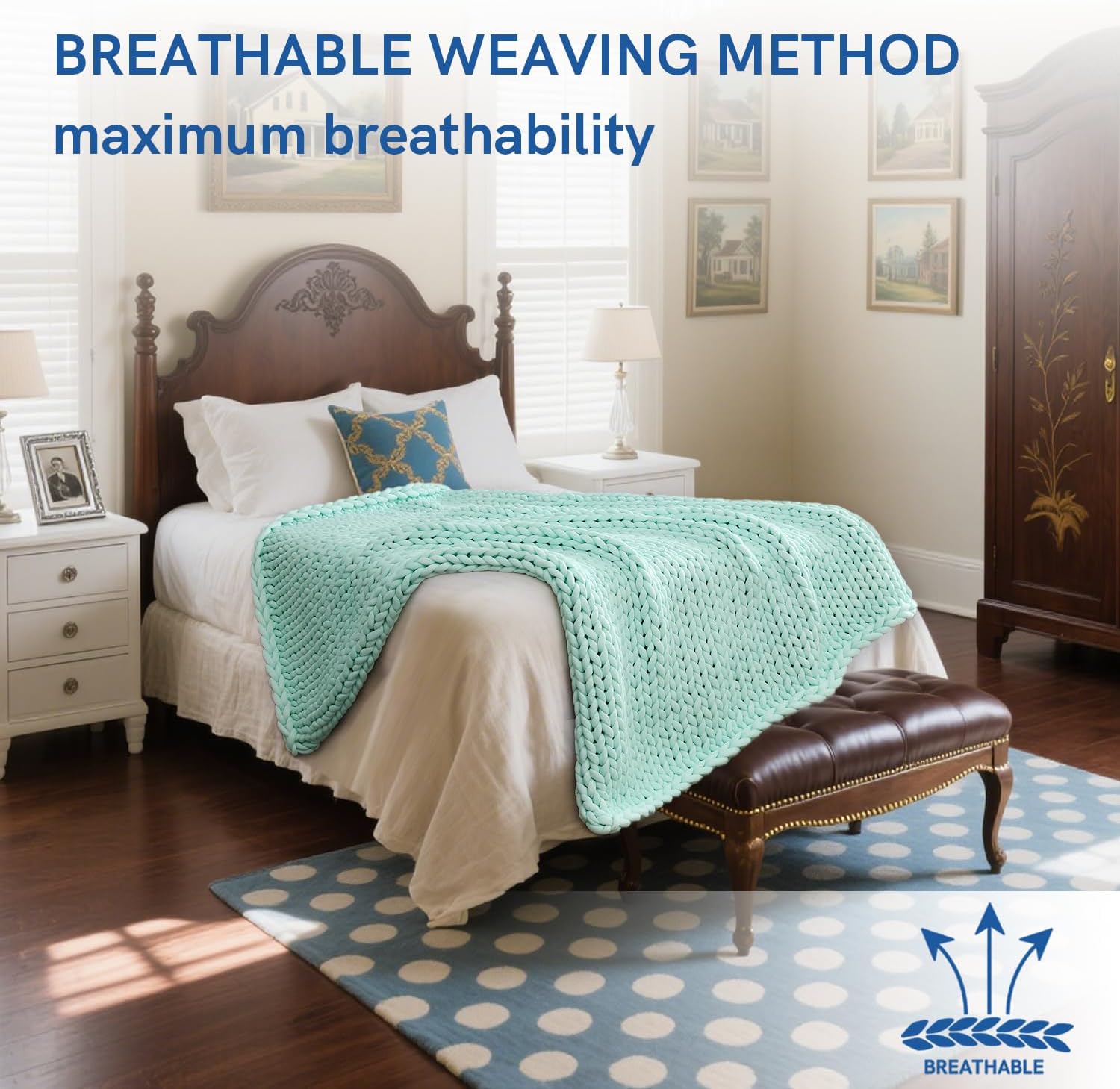 - [Comfortable] This blanket is knitted with a medium weight chunky yarn and matches the YNM Weighted Blanket's embracing and cuddly sensation. Therefore, it is cozy, pleasant, and portable. Whether it's a sofa or a bed, indoors or outdoors, camping or traveling, it can follow you peacefully through all four seasons. Additionally, it is a terrific friend for your pet while you are not present. It is safe and does not shed during usage