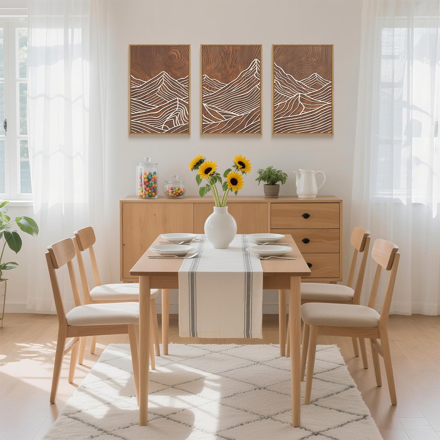 - 【Country Line Style Wall Art】The decorative paintings feature a unique style design with dark background as the primary tones. The most distinctive feature of this product is the embellishment of the imitation wood-carved mountains with white lines