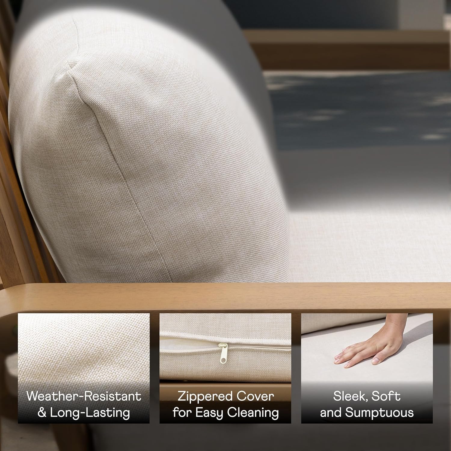 - ALL-WEATHER WOOD CLUB CHAIR SET FOR OUTSIDE SPACES: Crafted with weather-resistant materials and high-quality beige cushions, this set fits beautifully into any patio, garden, or balcony