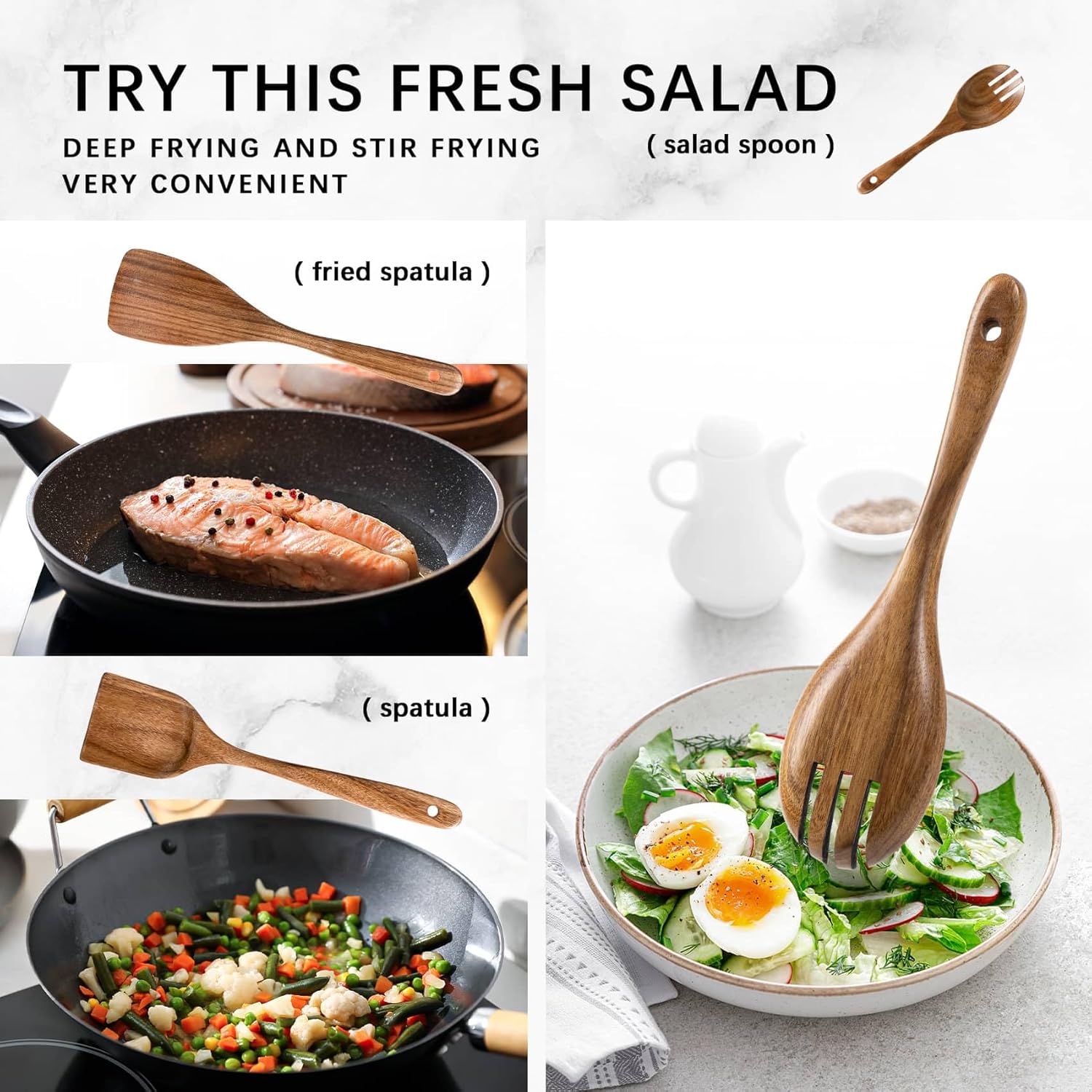 - ALL-IN-ONE UTENSIL SET:Get a complete cooking solution with our Wooden Utensils for Cooking Set with wood spoons and spatulas.Versatile tools for all your cooking needs