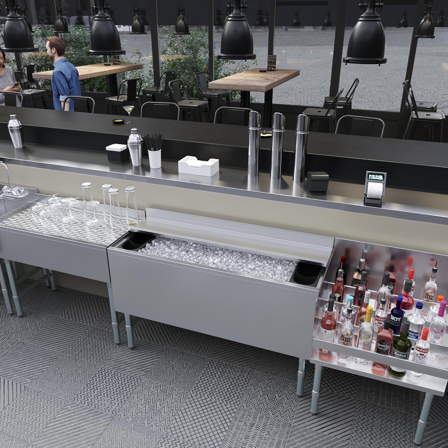 AmGood 18.5 in. x 48 in. Underbar Ice Bin with Sliding Lid | NSF | Stainless Steel Ice Chest with Sliding Lid