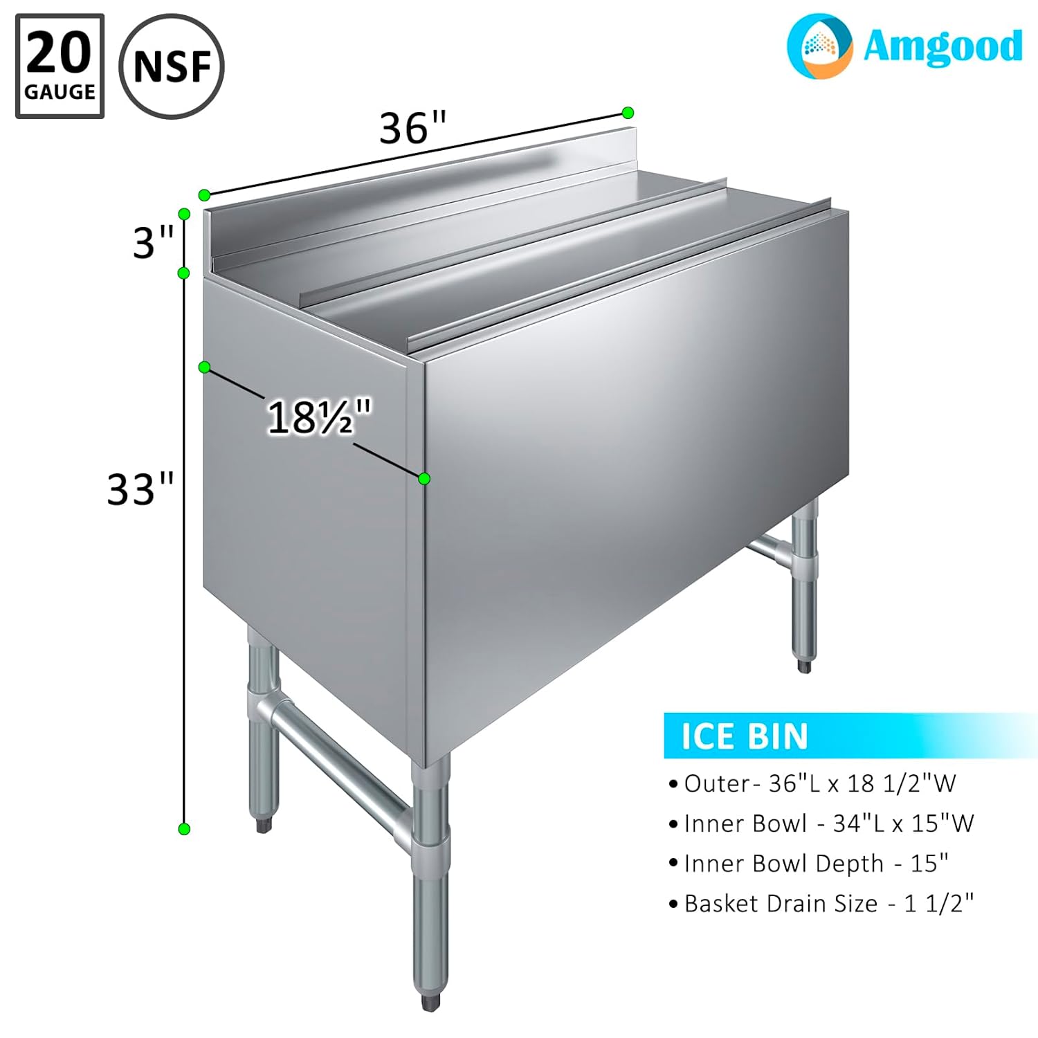 AmGood 18.5 in. x 36 in. Underbar Ice Bin with Sliding Lid | NSF | Stainless Steel Ice Chest with Sliding Lid