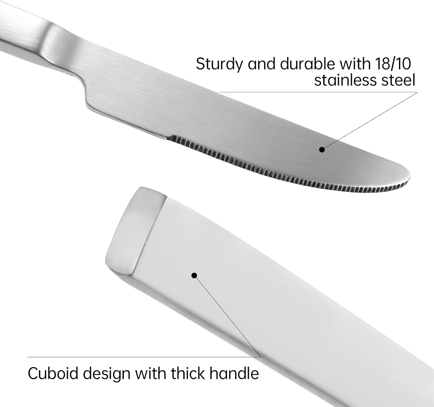 Stainless Steel Flatware Set Hand Forged 18/10 Silverware Set Cutlery Set Silver Cuboid Handle Matte Finished 20 Pieces Service for 4