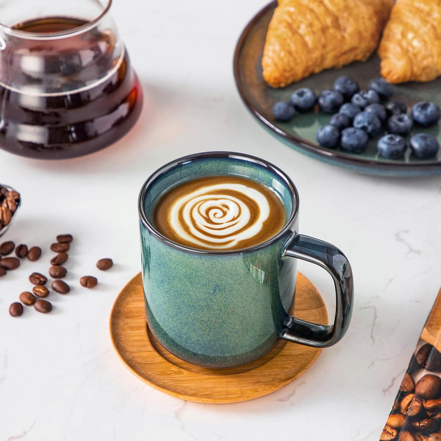 vancasso STARRY Coffee Mugs Set, 12 oz Ceramic Coffee Cups for Latte Hot Tea Cappuccino Cocoa Milk Stoneware Cups Set of 6, Dishwasher & Microwave Safe, Green