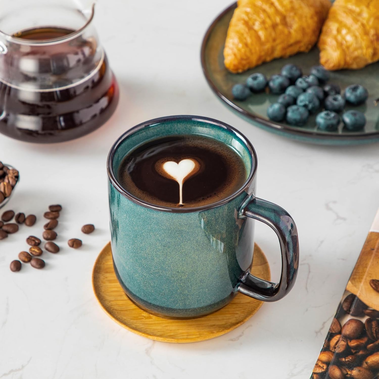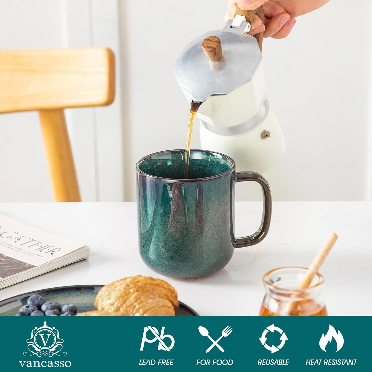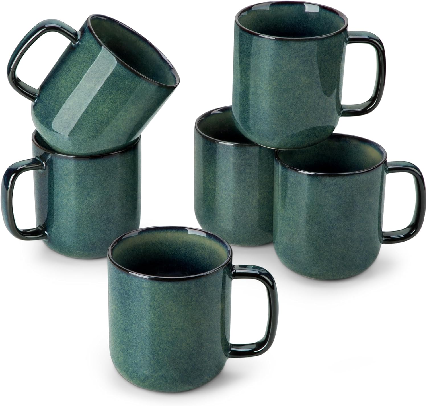 vancasso STARRY Coffee Mugs Set, 16 oz Ceramic Coffee Cups for Americano Hot Tea Iced Coffee Cold Brew Cocoa Milk Stoneware Mugs Set of 6, Dishwasher & Microwave Safe, Green