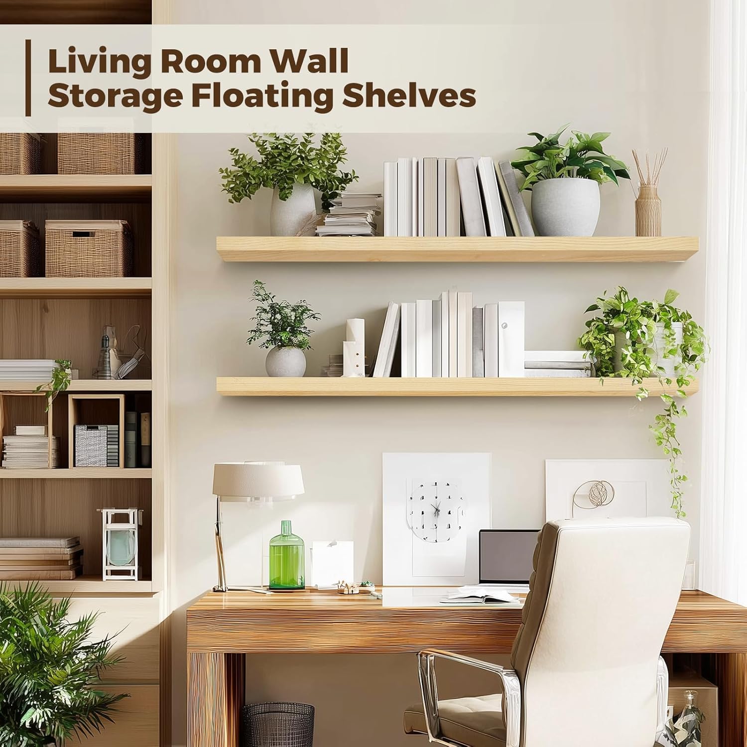 Floating Wall Shelves 2-Pack - 36-Inch Rustic Wooden Shelves for Storage and Décor, Easy Installation for Living Room, Bedroom, and Kitchen