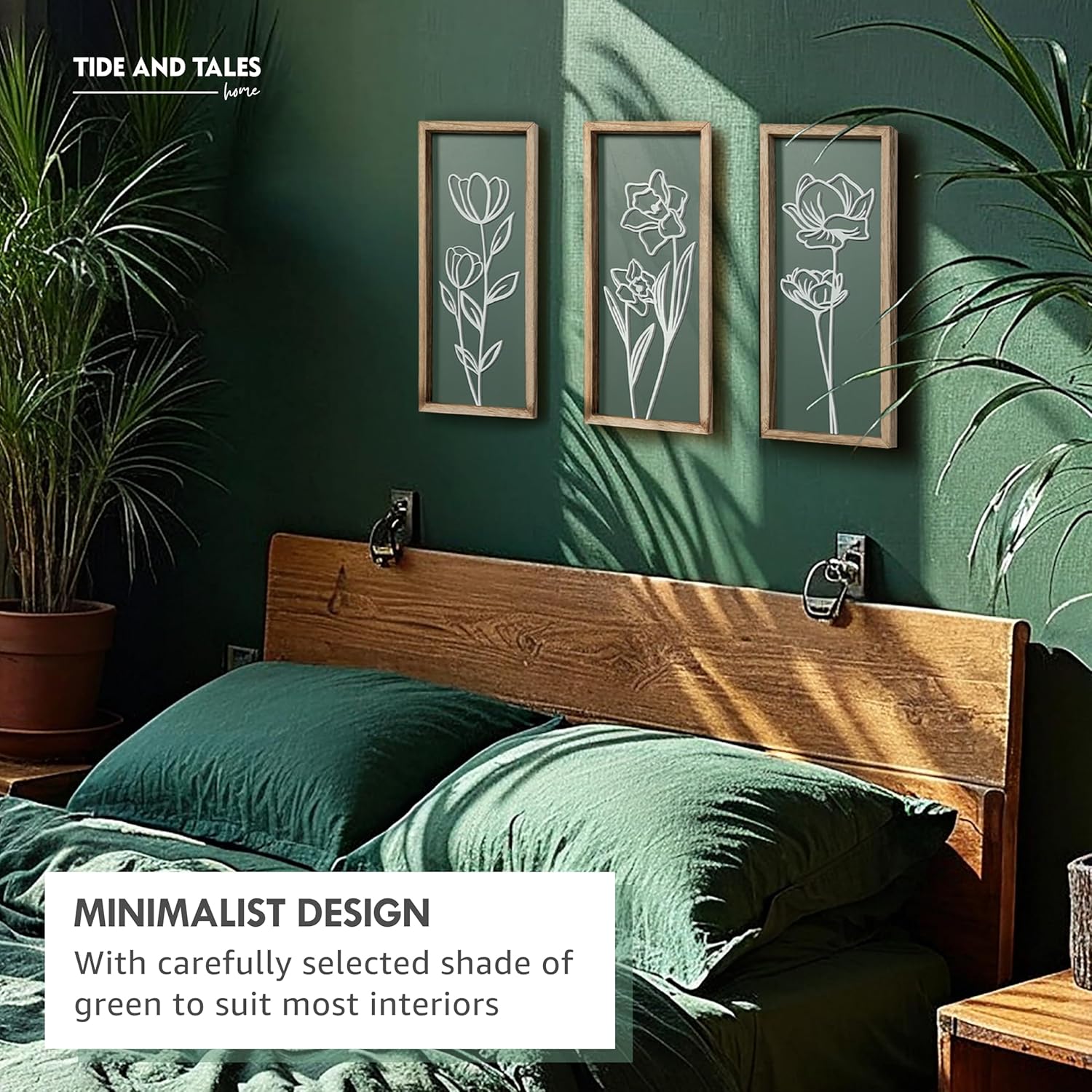 - Unique 3D Floral Cutout Design – This elegant 3 piece set features raised wooden floral cutouts that add texture and depth, setting your new decor apart from the usual prints and pictures. Designed with carefully selected green shade that is easy to style.
