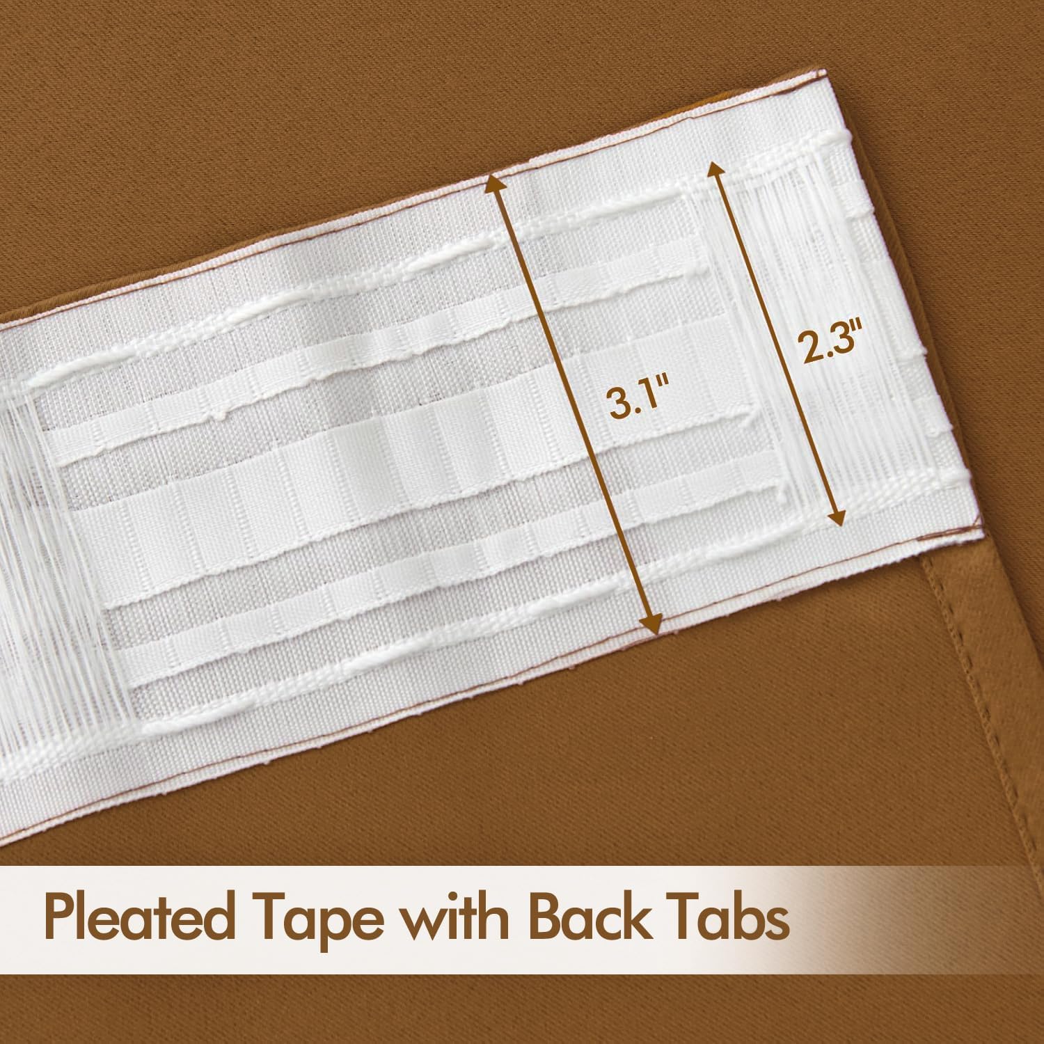 MIULEE Golden Brown Back Tab Blackout Curtains 108 Inch Long 2 Panels Set for Bedroom, Rod Pocket/Pinch Pleat Extra Long Thermal Insulated Living Room Darkening Pleated Light Blocking Drapes