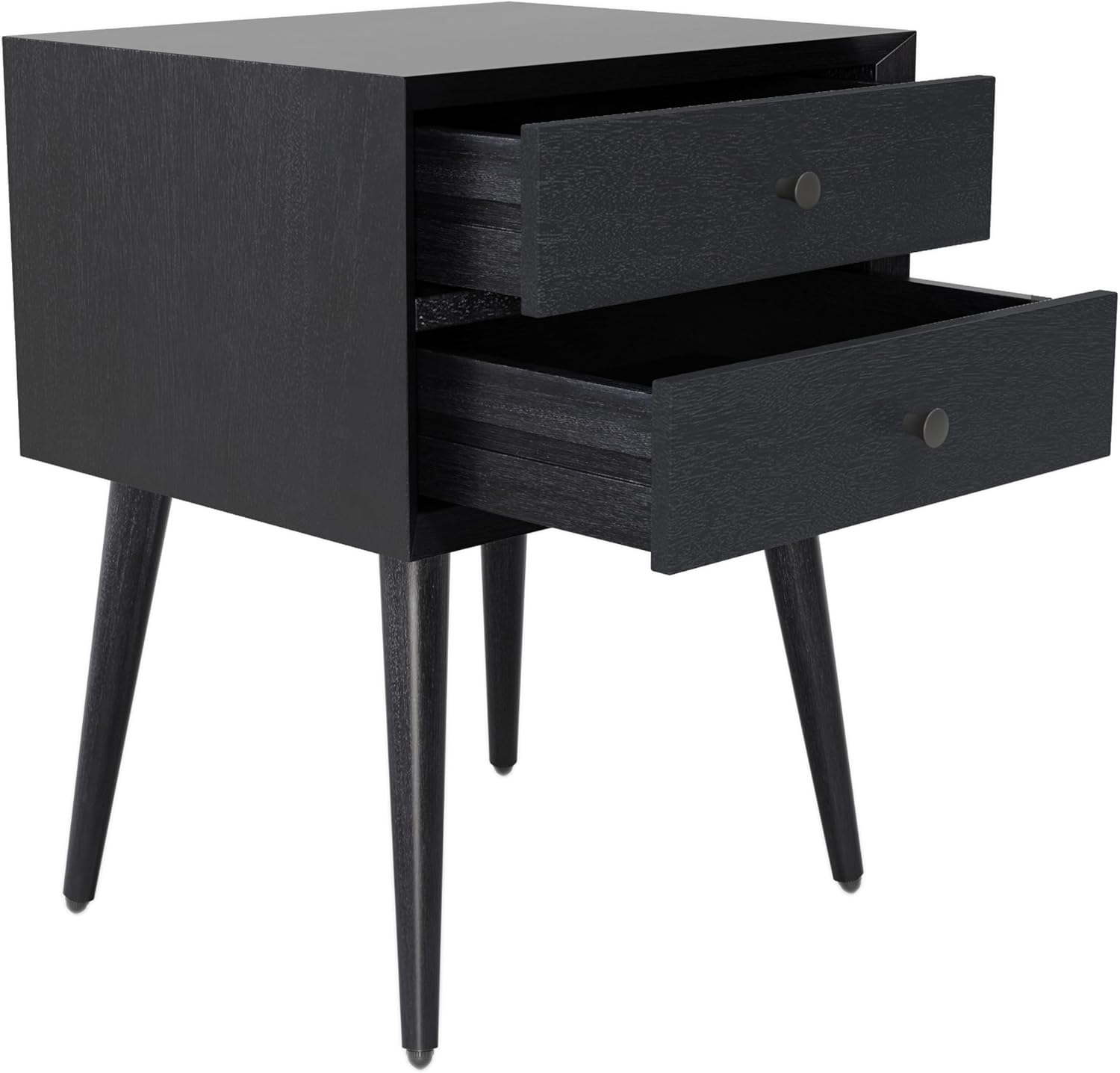 Christopher Knight Home Accent Bedside End Table, Acacia Wood Nightstand Side Table, Storage with 2 Drawers, Mid-Century Nightstand with Solid Wood Leg for Bedroom Dorm and Small Space, Black