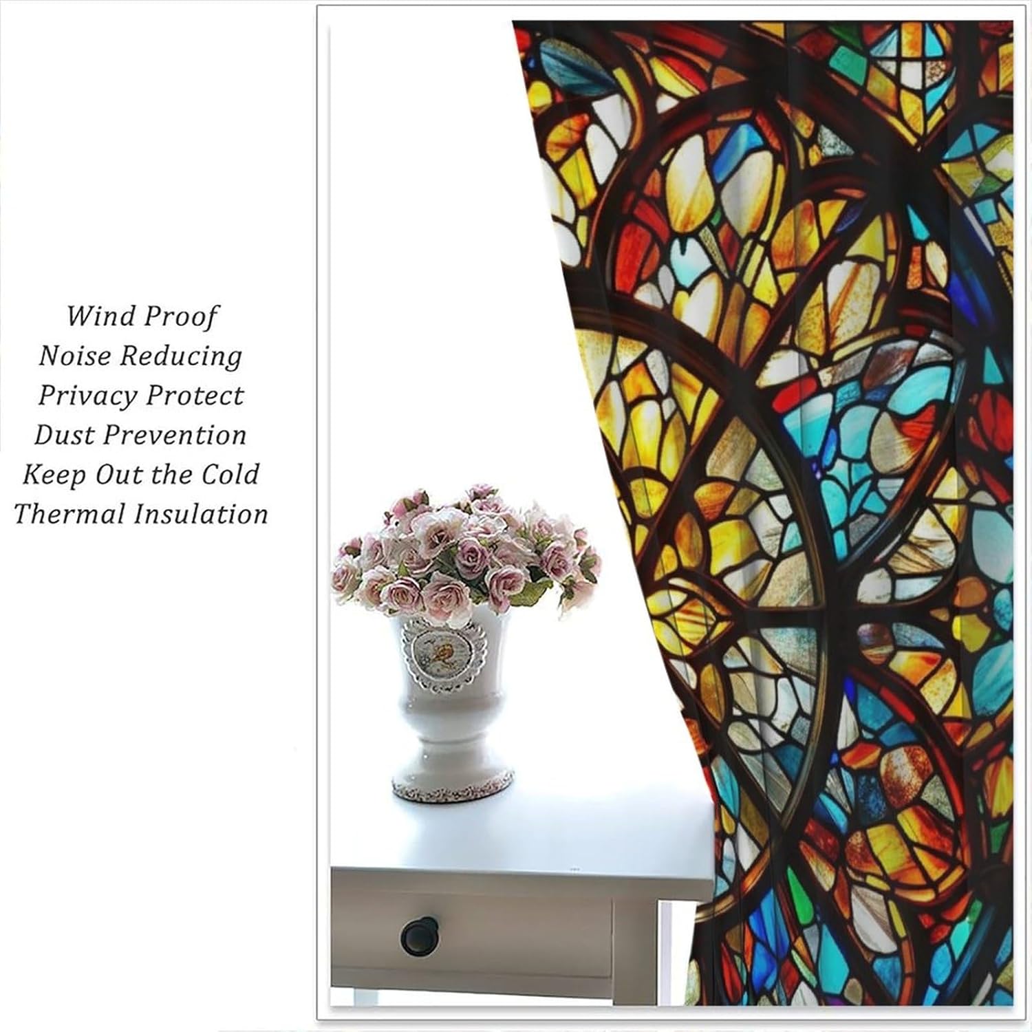 Stained Glass Curtains,Retro Mid Century Abstract Colorful Geometric Prints Home Decor Drapes for Bedroom Living Room Kitchen Window Treatment 2 Panels Set Total Size 42" W X 45" L Inch