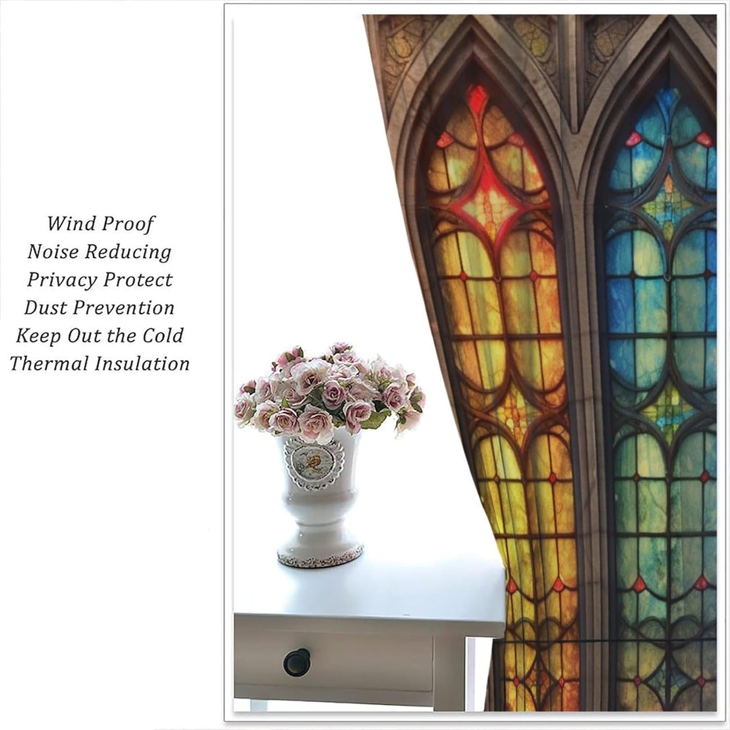 Stained Glass Curtains,Mid Century Vintage Style Abstract Art Home Decor Drapes for Bedroom Living Room Kitchen Window Treatment 2 Panels Set Total Size 42" W X 63" L Inch
