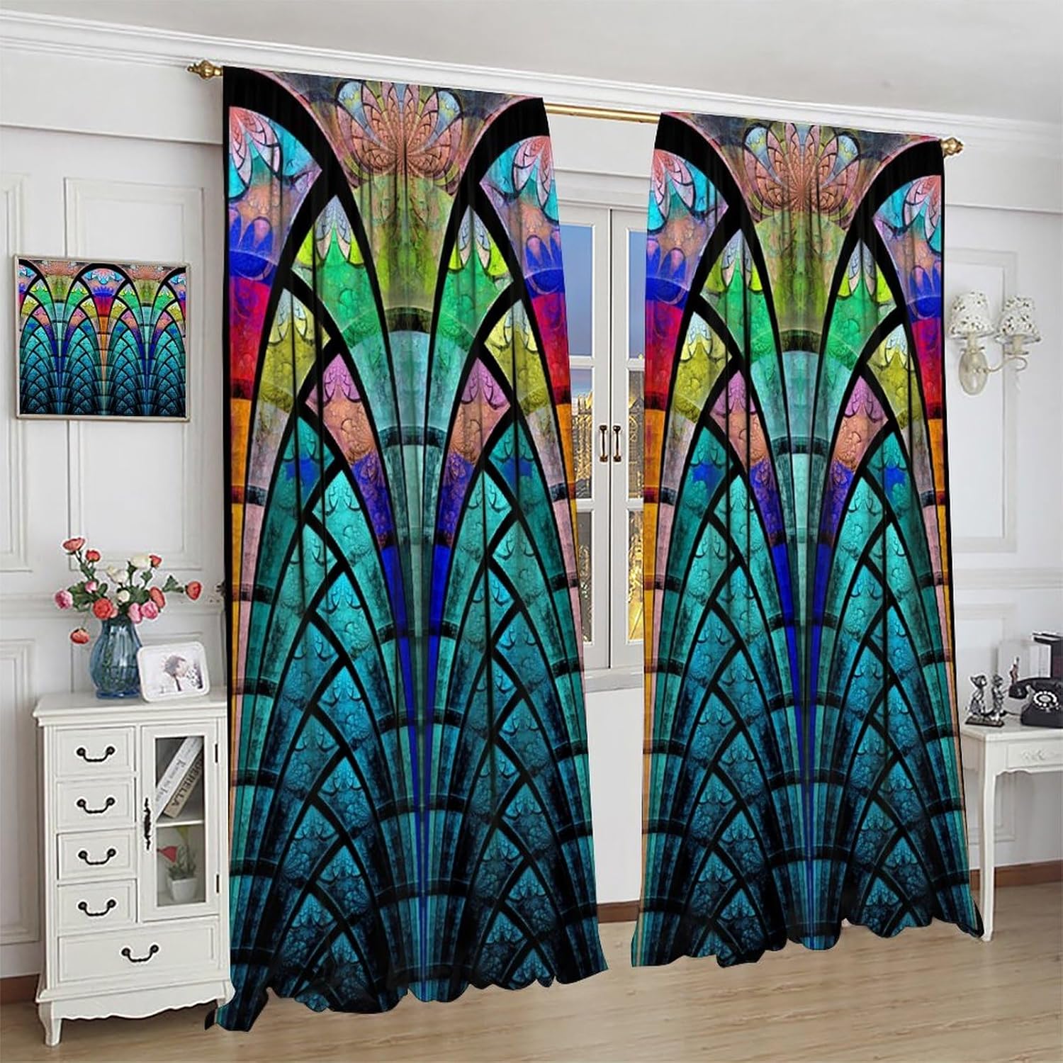 Stained Glass Curtains,Retro Design Style Colorful Abstract Art Home Decor Drapes for Bedroom Living Room Kitchen Window Treatment 2 Panels Set Total Size 42" W X 45" L Inch