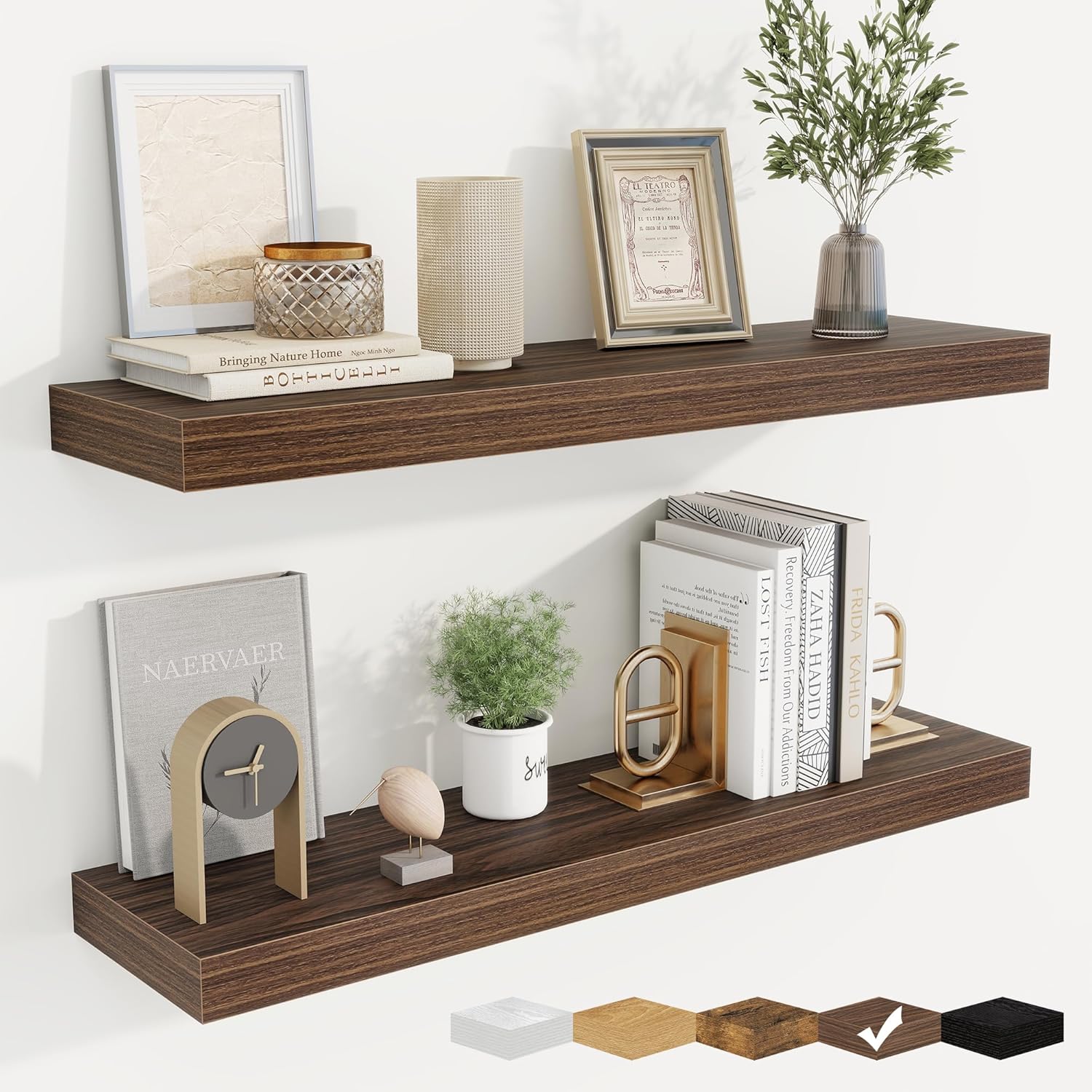 fuqing Floating Shelves for Wall, Bathroom Shelf Wall Mounted for Storage, Shelves with Invisible Bracket for Bedroom, Kitchen, Living Room, Farmhouse Small Book Shelf, 30 Inch Set of 2, Walnut