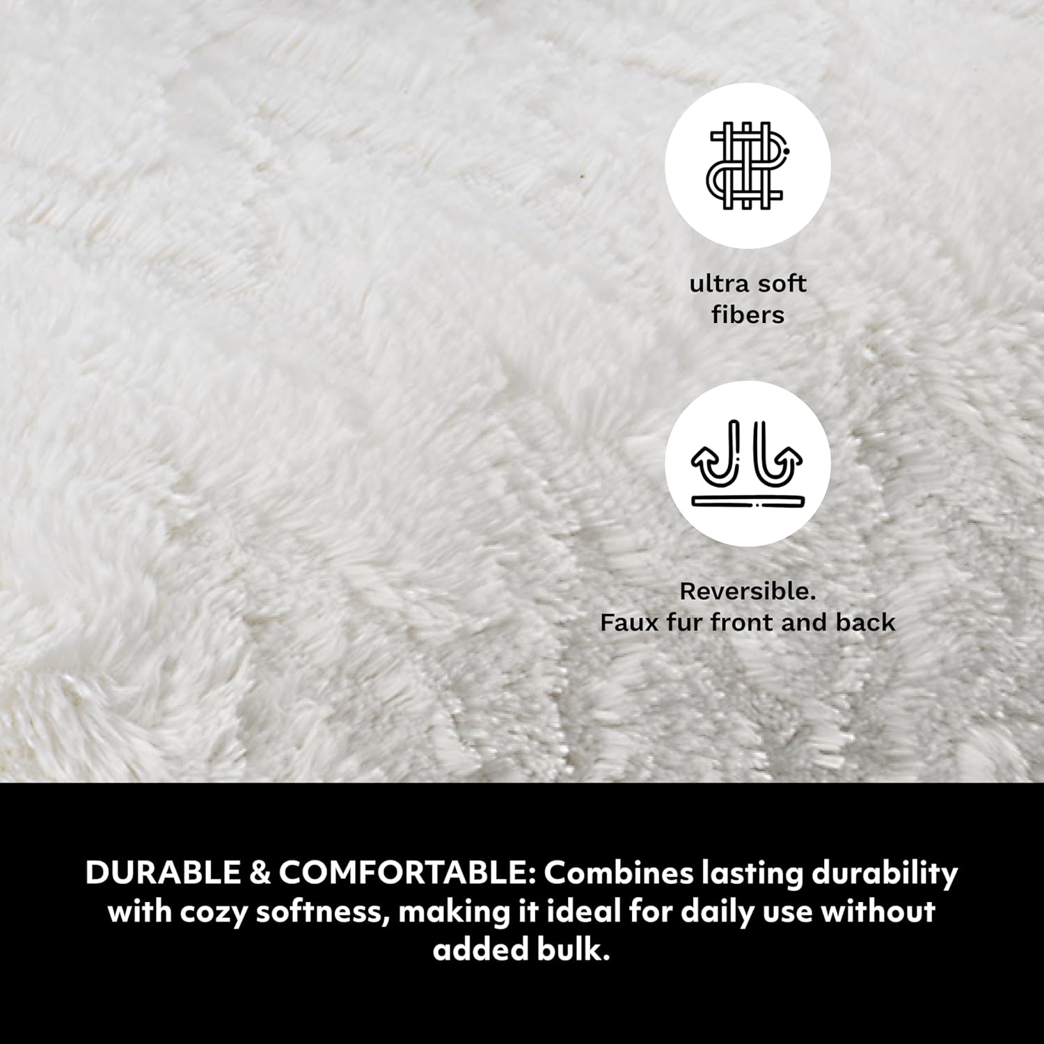 Mon Chateau Premium Reversible Queen Size Luxury Faux Fur Throw for Couch, Sofa, or Queen Size Bed - Plush Cozy Soft Blanket for Sleeping or Home Décor, 60" x 70" (Ivory Jacquard)