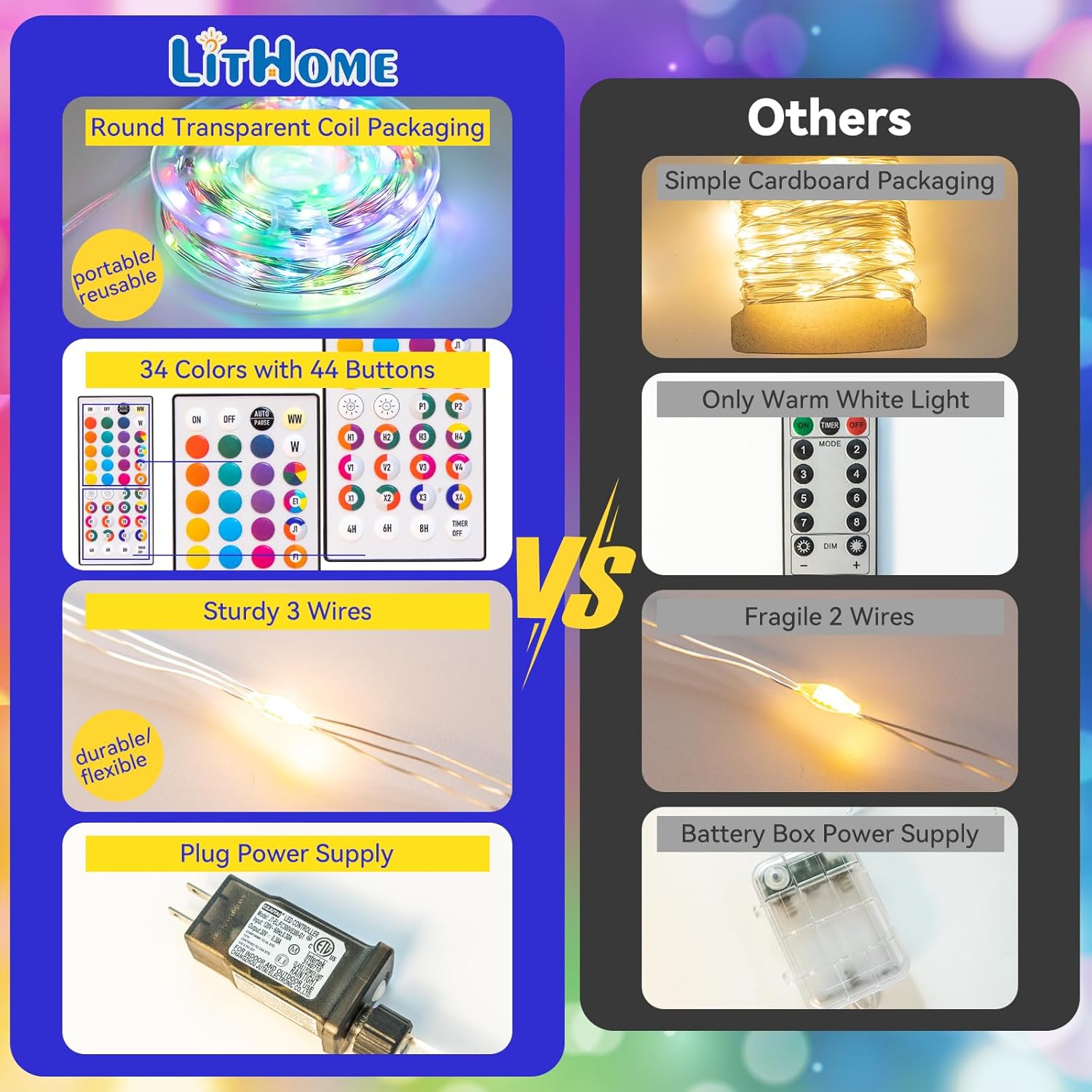 - Color Changing Fairy String Lights β Your Ultimate Mood-Setting Companion : Whether enhancing cozy bedroom moments, illuminating wedding celebrations, powering up parties, adding spooky Halloween charm or sparkling through Christmas festivitiesβthese starry twinkle lights instantly elevate every scene. Immerse yourself in the mesmerizing magic of ever-shifting hues β where every moment glows with possibility!