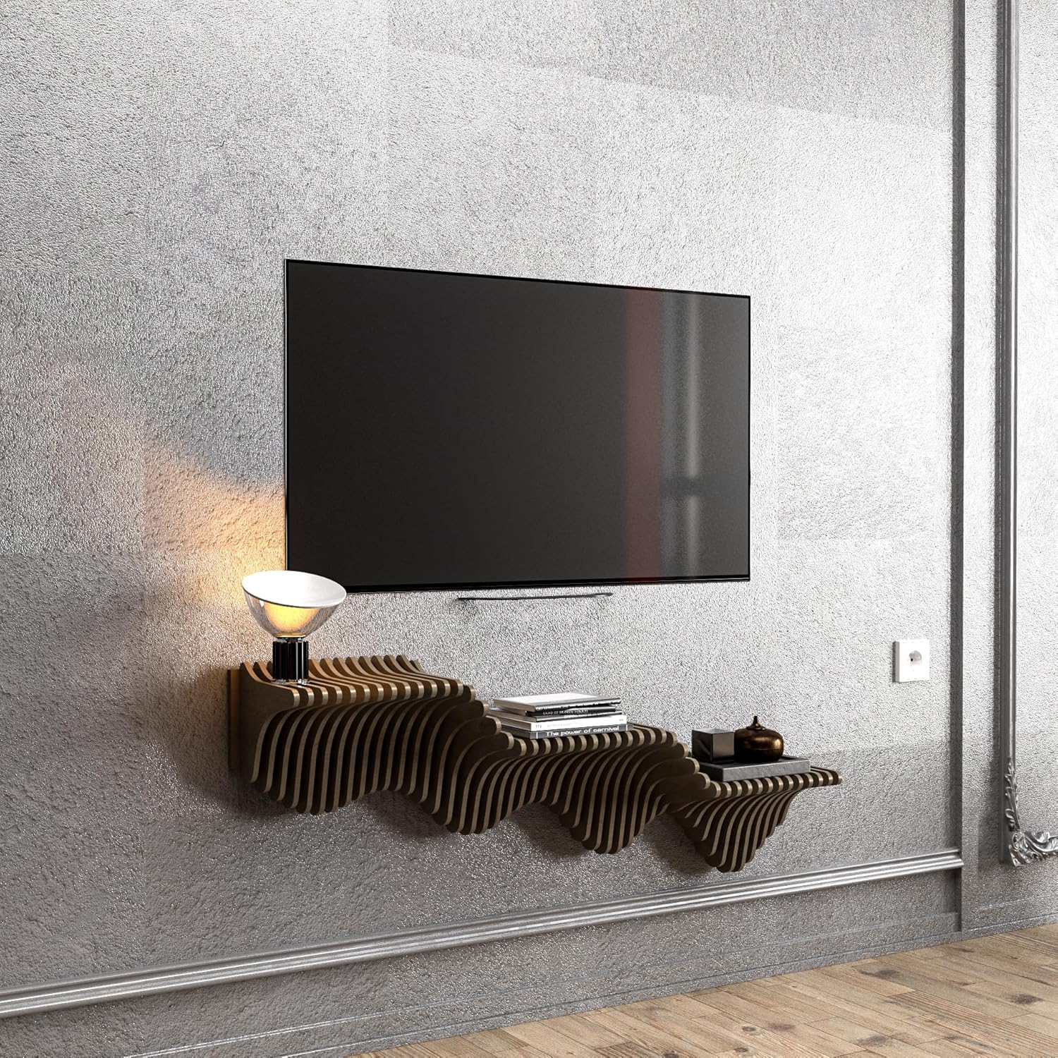 - Upgrade your space with the Batamex 40" Wavy Parametric Shelf - where art meets function! This stunning parametric design works as a TV stand, display shelf, or floating console, adding instant modern flair. Made with premium oak-finish MDF, it holds 25 lbs and installs in 15 minutes. Perfect for living rooms, gaming spaces, home offices or as a stylish gift. Order yours now.