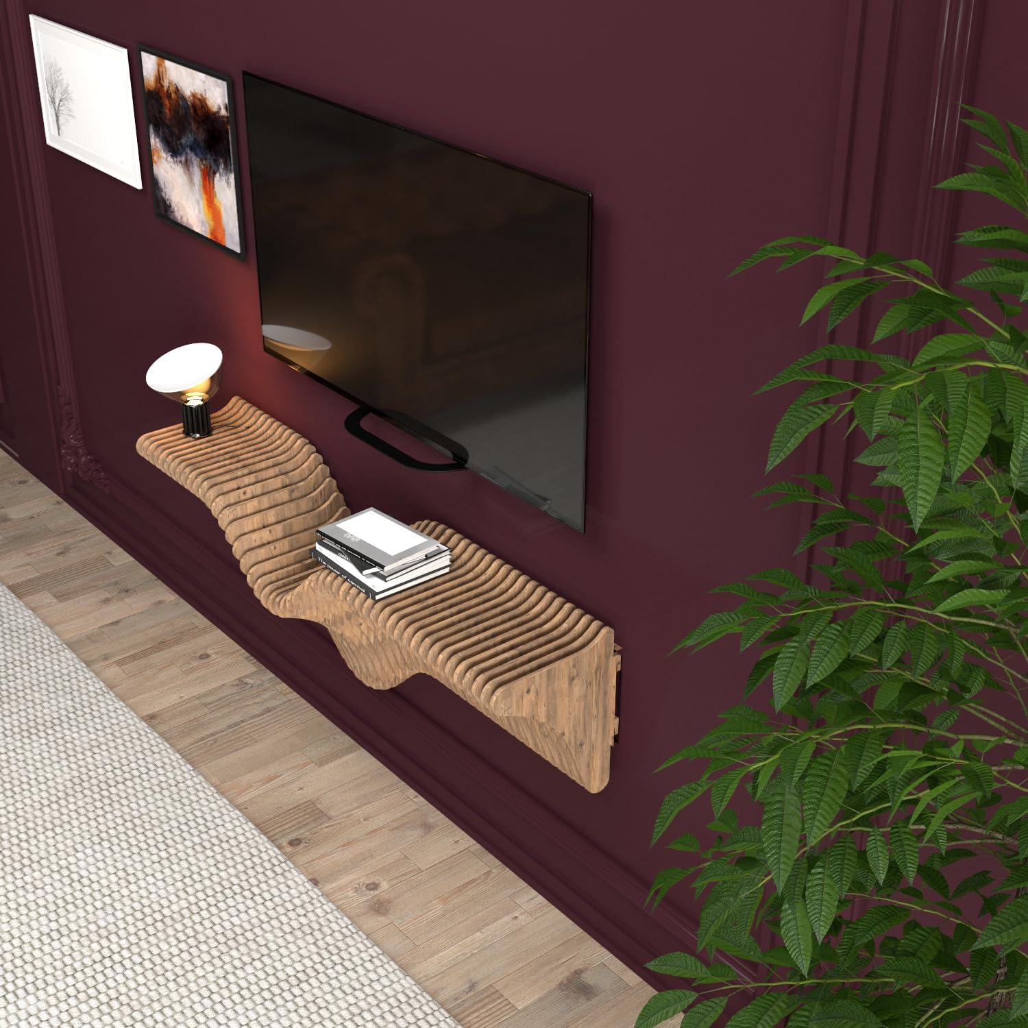 - Batamex 40" Wavy Floating Shelf โ Where modern design meets everyday versatility. This sculptural teak-finished piece effortlessly transforms from a sleek TV stand to a floating display shelf or console table, adapting to your needs. The mesmerizing 3D wave pattern (100cm/40inch) makes a bold statement while offering practical storage.
