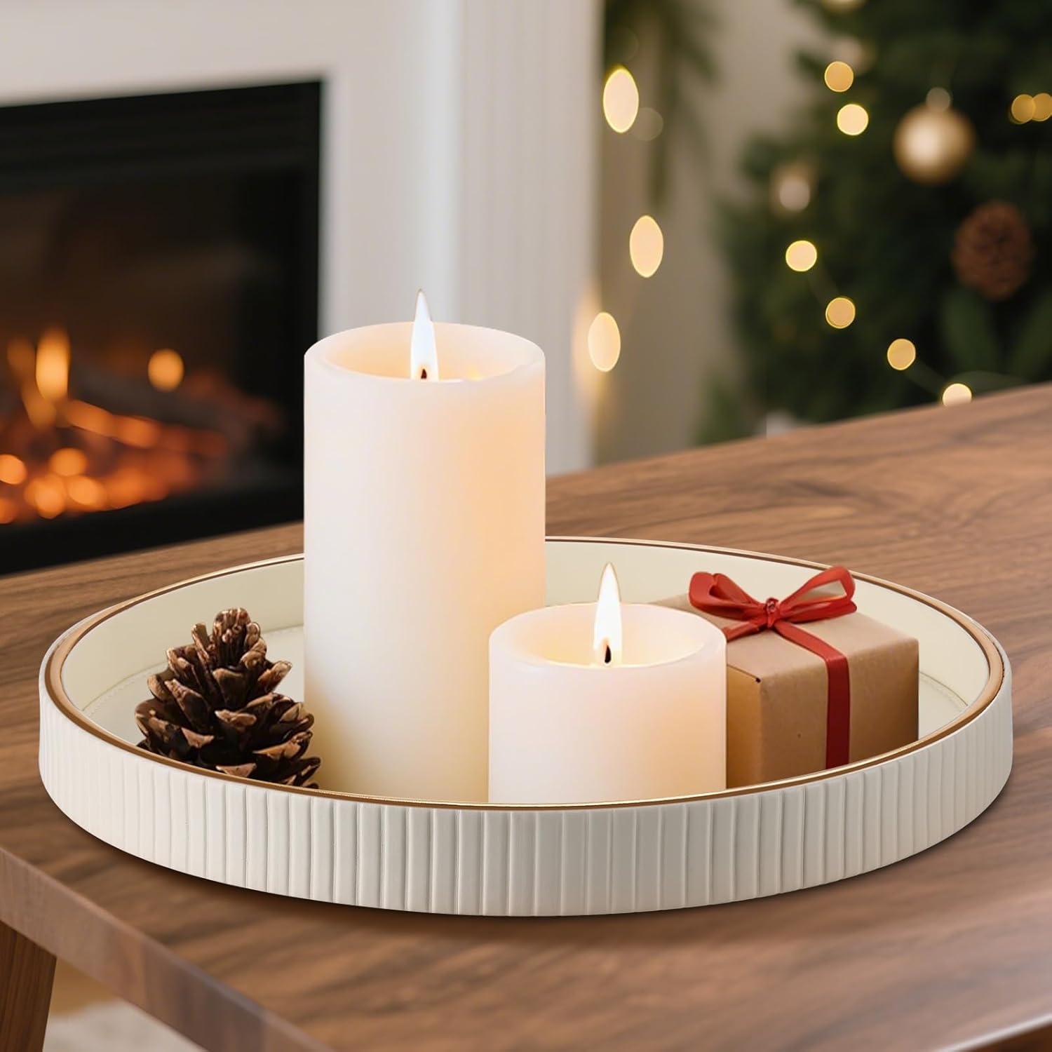 - Elegant Round Shape: Measuring 11.8'' Dia x 1.18''H(30cm x 3cm), the round profile offers ample space while maintaining a compact footprint, small items can be seen at a glance, easy to take out. Display candles, perfume, skincare, keys, coins, watches, remote controls, cosmetics, or decorative accents in style. Can be stacked to save space when not in use