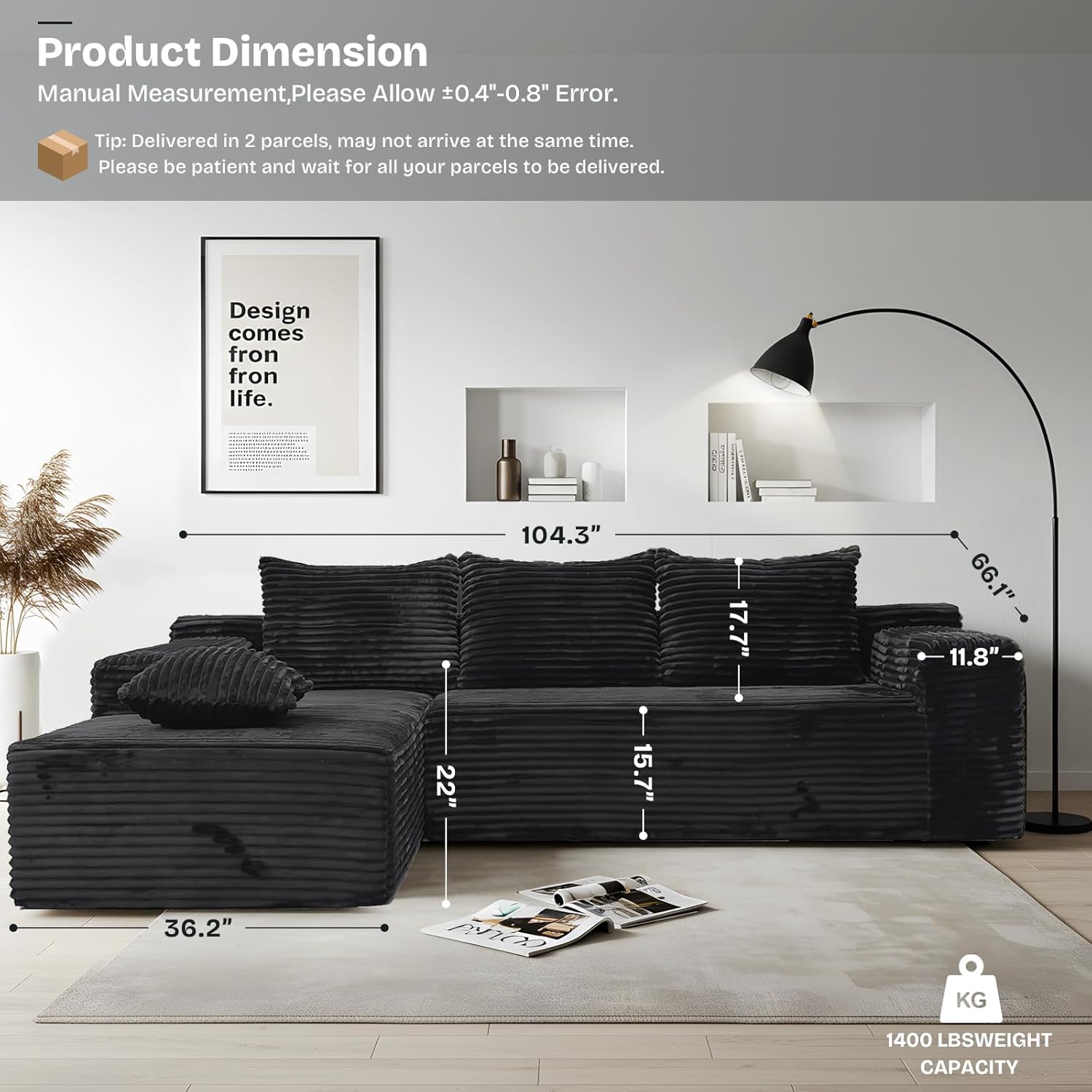 - Compressible & Space-Smart Design: Ultra-lightweight foam core compresses to 1/4 size for effortless moving through narrow doors or stairs β ideal for apartments, dorms, and renters. Expands to a stylish L-shaped sofa in hours, blending seamlessly with modern living rooms or cozy bedroom decor