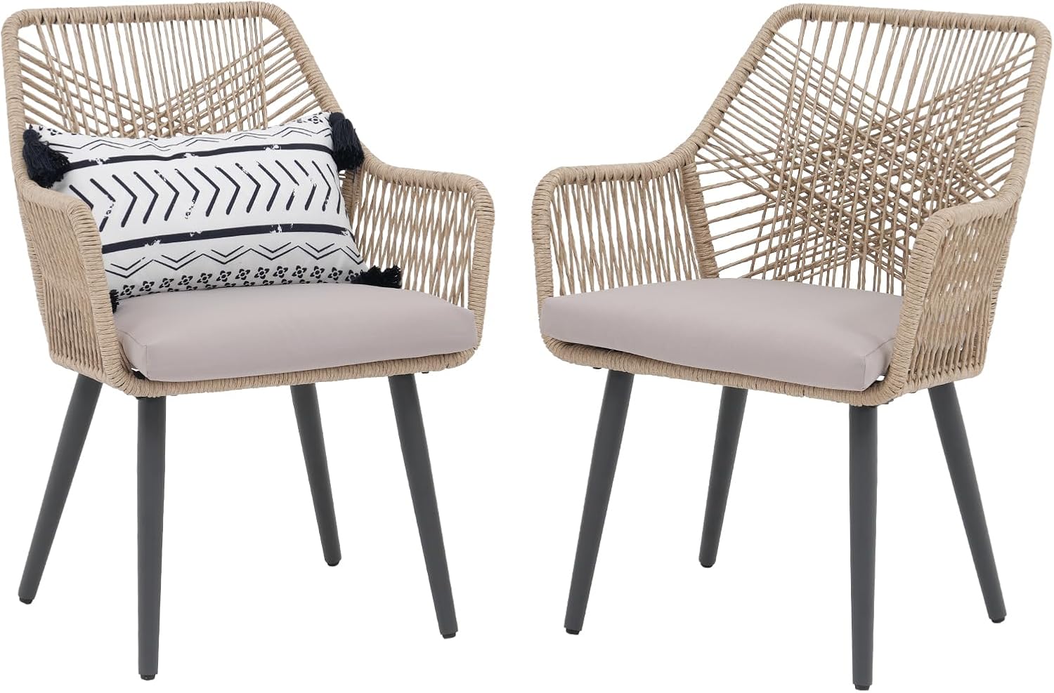 Patiorama Patio Dining Chair Set of 2, Woven Rope Outdoor Dining Chairs w/Steel Frame, All-Weather Twisted Rattan Chairs w/Armrest & Cushion, Outdoor Dining Wicker Chairs for Backyard Garden(Beige)