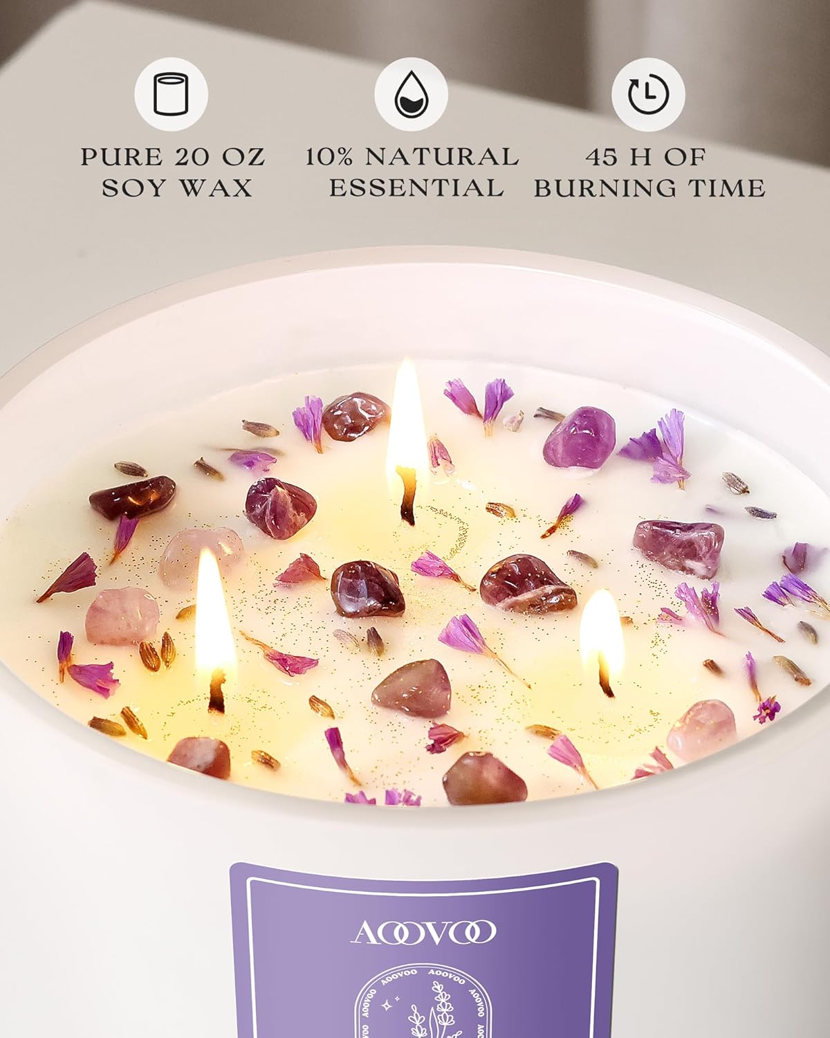 AOOVOO Lavender Scented Candles for Women - 20oz 3 Wick Soy Candles for Home Scented, Aromatherapy Candle with Crystals Inside, Birthday Gifts Mothers Day Candle for Women Mom