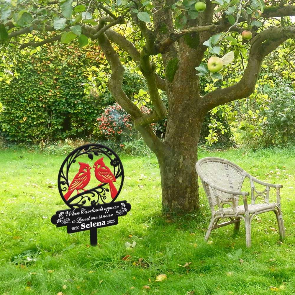 Personalized Cemetery Memorial Metal Stakes, Cardinals Memorial Grave Markers,Graden Decorations for Loss of Mother Father, Outdoor Sympathy Decor Gift