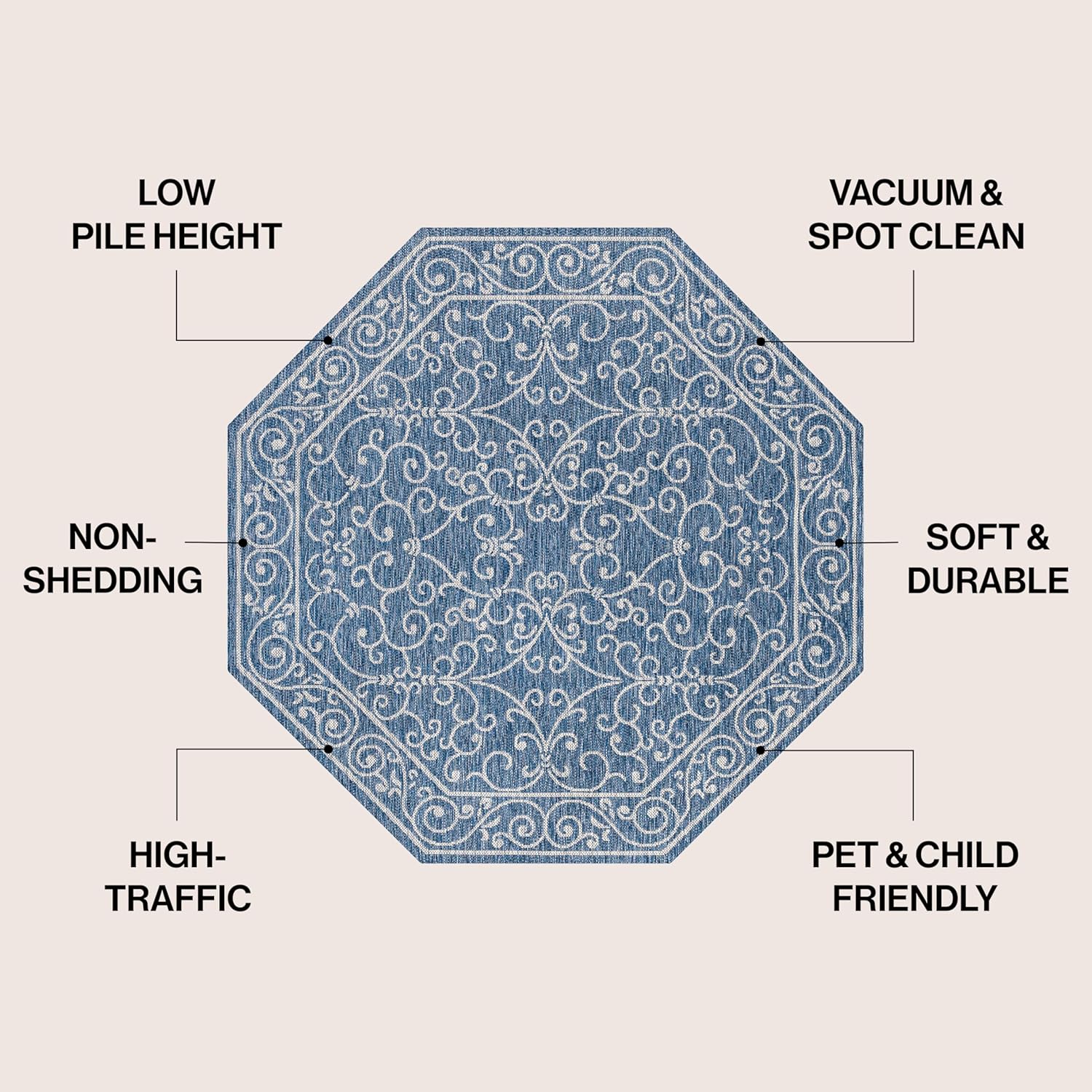 JONATHAN Y Vintage Filigree Indoor Outdoor Octagon Area Rug 5 Ft Navy/Gray, Charleston Textured Weave for Backyard, Patio, Porch, Easy-Cleaning, High Traffic, Pet-Friendly, Non-Shedding SMB106D-5TGN