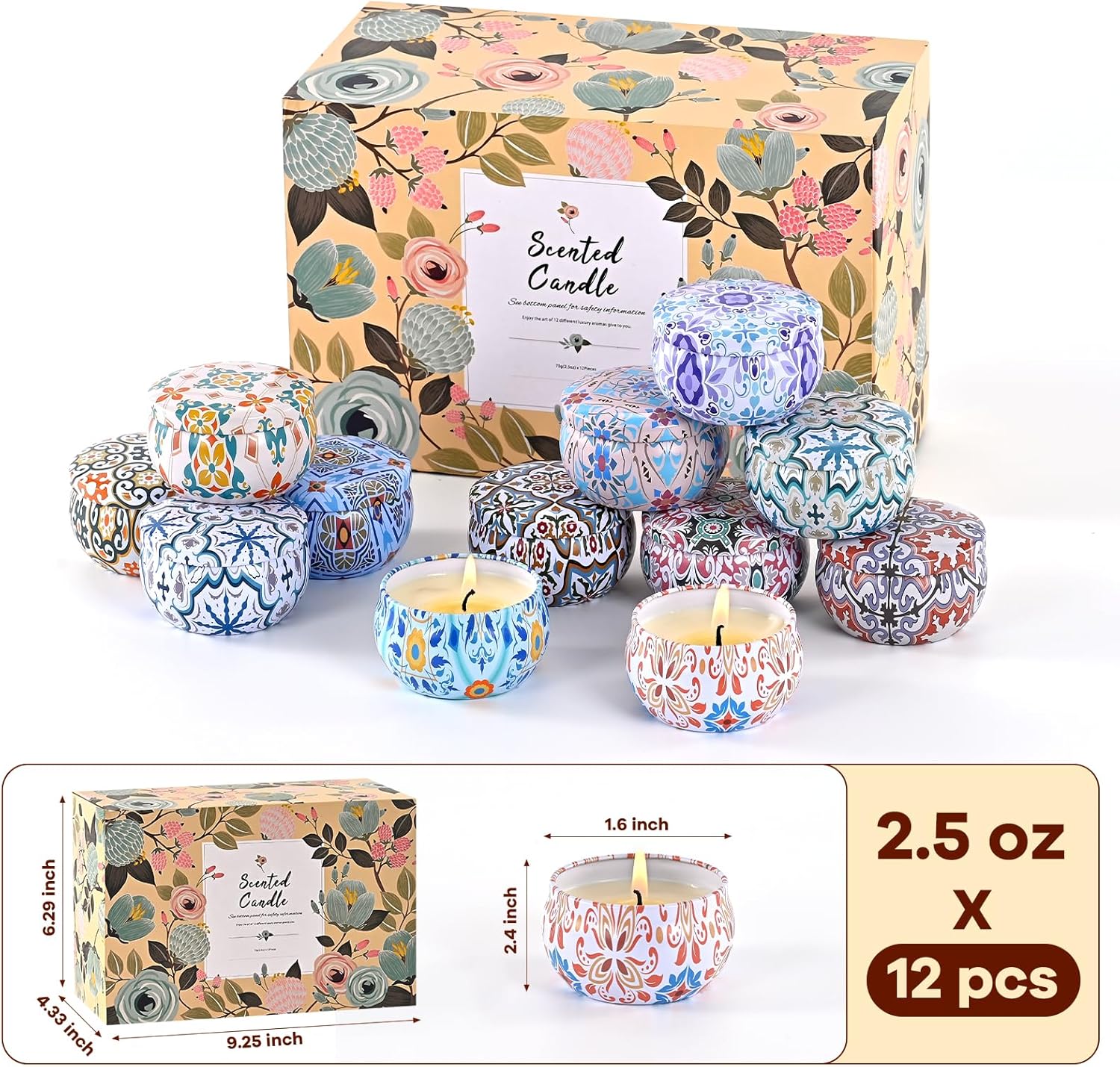 Scented Candles Gift Set, Candles for Home Scented 12 Pack, 300 Hours Long Lasting Soy Wax Aromatherapy Candle Set, Friends Moving Away, Birthday, Retirement Gifts for Women with Gift Box