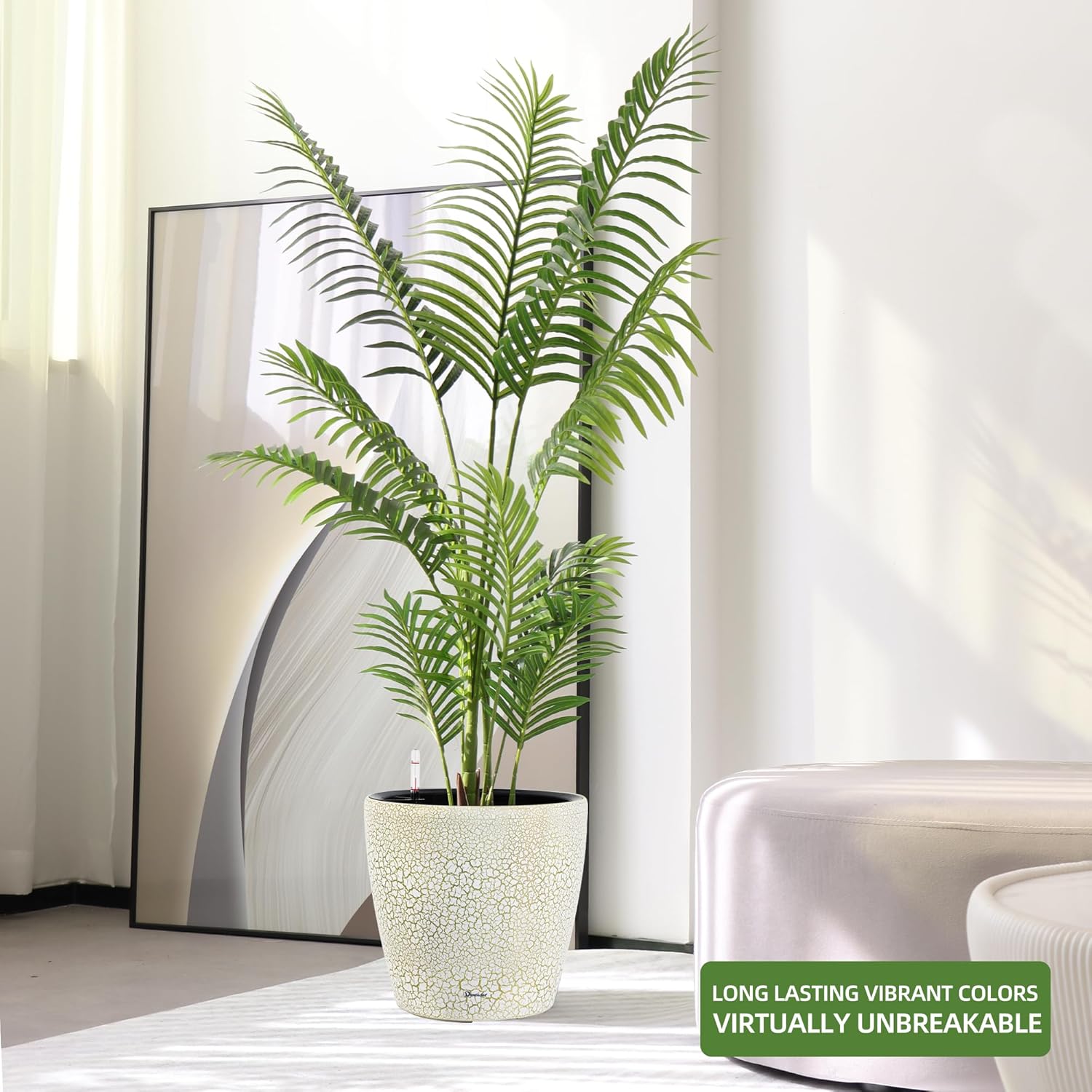 Dexceder 18x17 Self Watering Planter with Wheels Indoor Outdoor, Inner Pot Design, Thickened Large Floor Standing Flower Plant Pot with Water Level Indicator (White Gold Crackle)