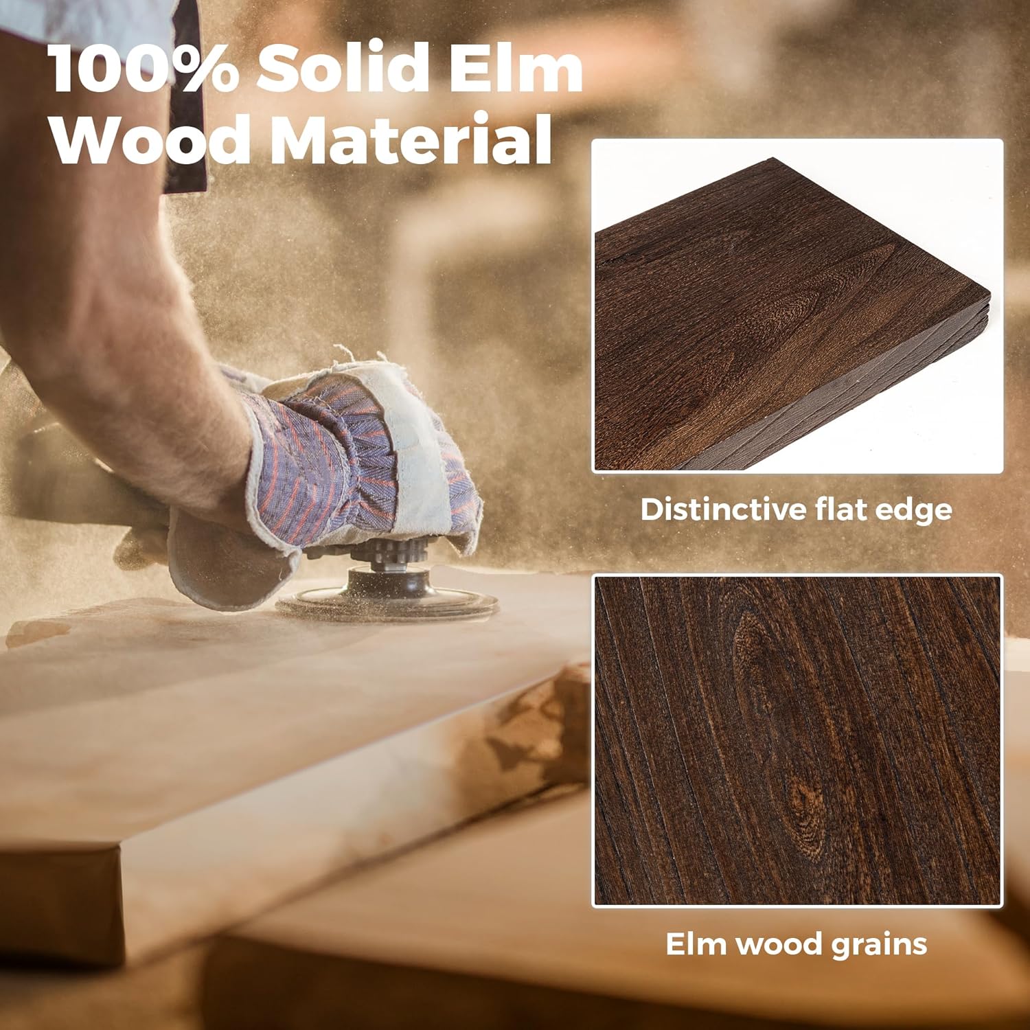 - RECLAIMED ELM WOOD SHELVES: Our wooden floating shelves are handcrafted from solid reclaimed elm wood, each floating shelf showcases the natural beauty of wood knots, grain, and texture. The reclaimed elm wood features knots, cracks and imperfections that tell a story of time and use. These shelves exude a rustic and aged appearance, adding charm and character to your home decor