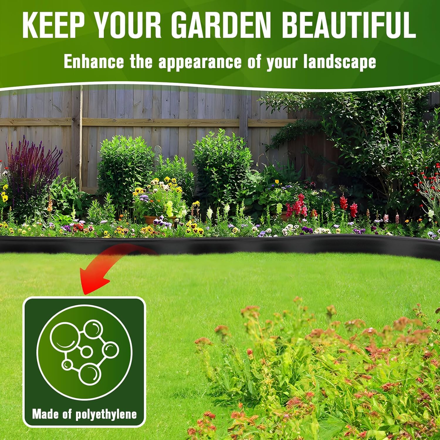 - High-Quality Garden Edging: This garden edging for landscaping is made of polyethylene (PE) is very strong and flexible, not prone to aging, reusable, longer service life, strong weather resistance make makes it an ideal for garden border edging, yard edging borders, flower bed edging, lawn border edging and flower bed edging borders