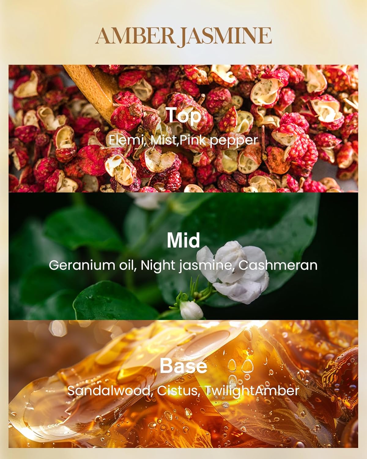 M&SENSE Amber Jasmine Scented Candle, Soy Candles 14.1oz 60H Slow Burning, Aromatherapy Stress Relief Home Fragrance Housewarming Gifts