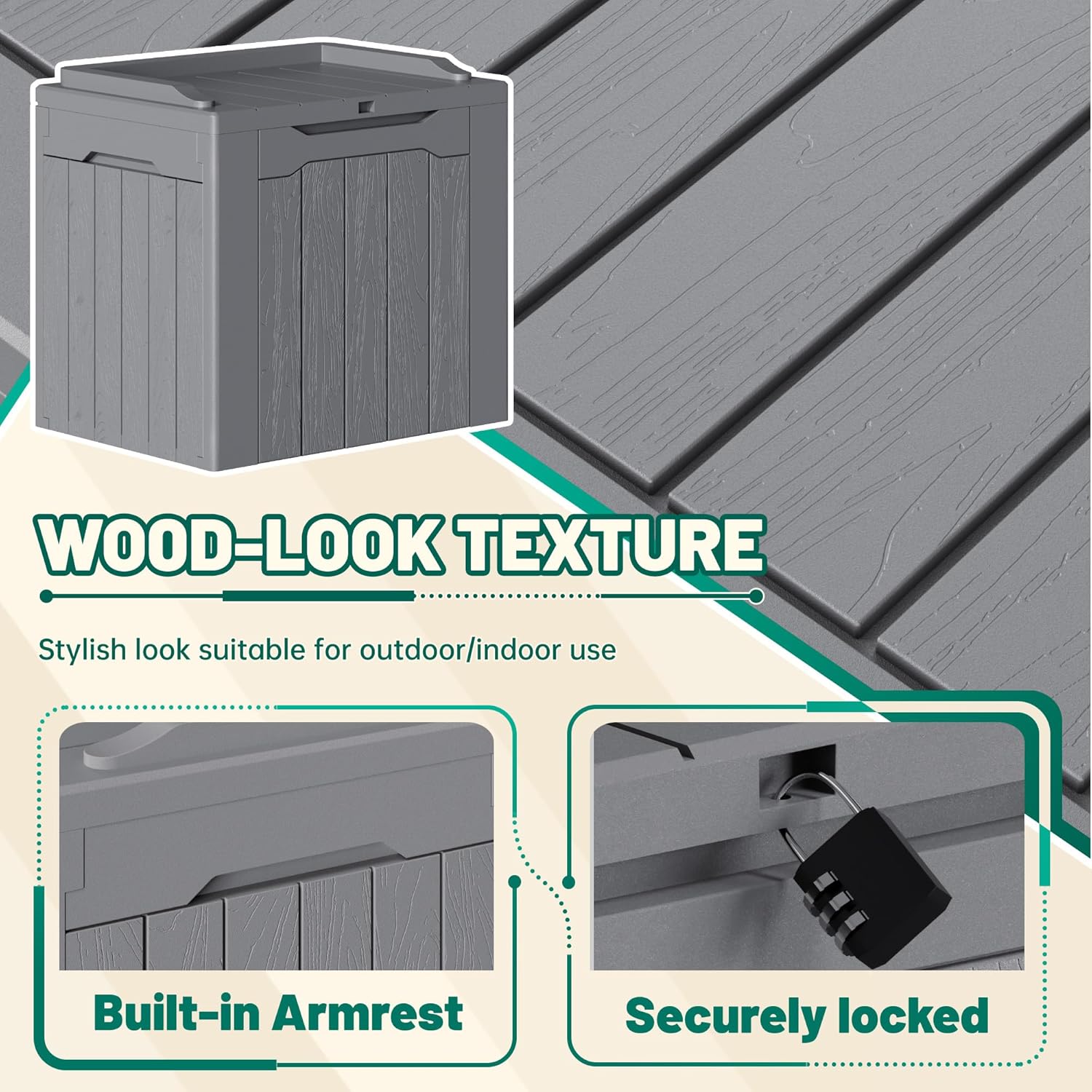 - Light & Solid: Made of a high density resin material, it is stable, waterproof and UV resistant. The net weight of this deck box is only 8.8 pounds