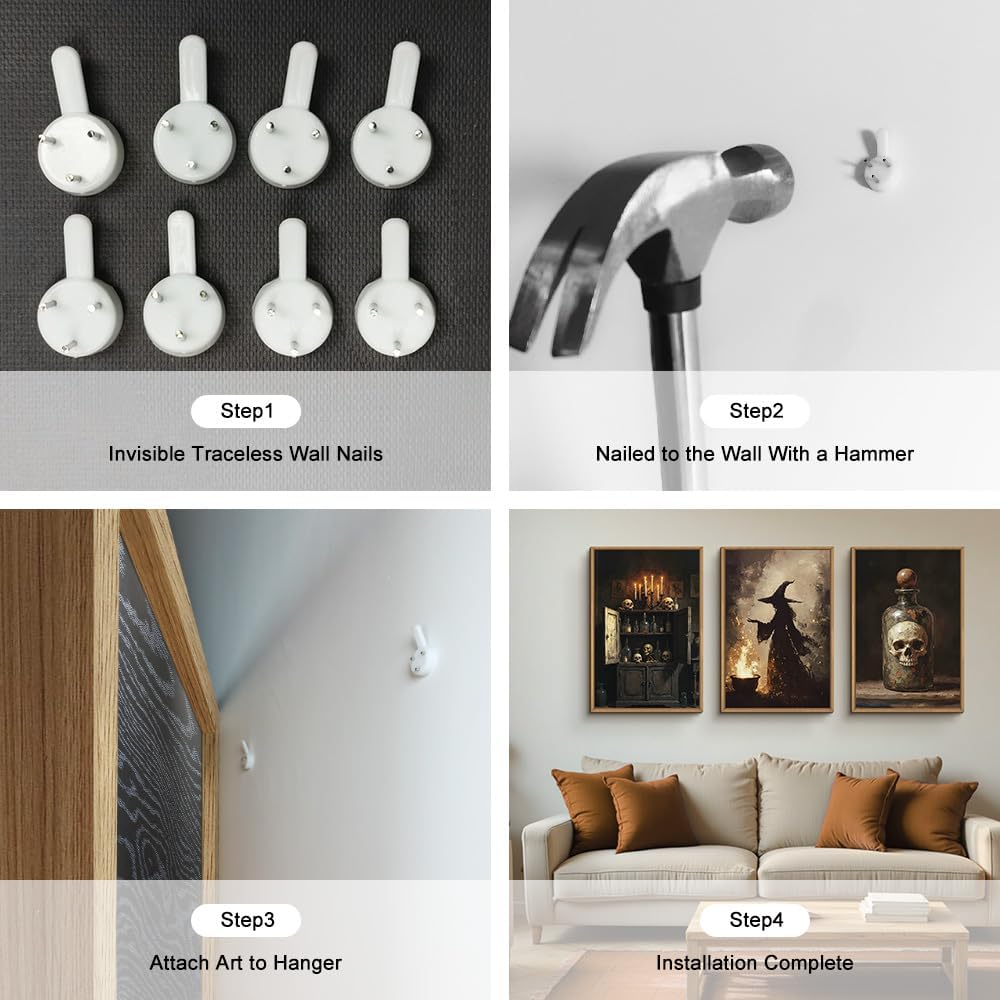 - 【Dark Gothic Halloween Wall Art】This set of framed paintings features a charming and whimsical take on witches and skeletons, perfect for decorating during the Halloween season or for adding a touch of mysterious charm to your home year - round.It can be a great conversation starter and a unique addition to your holiday decor collection.