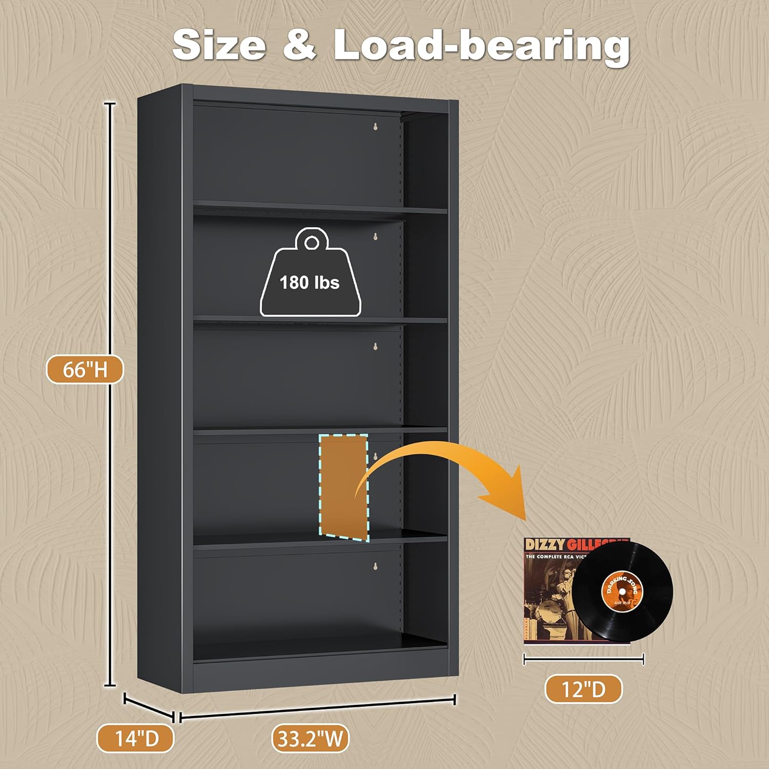 - 【Space-Smart Storage Solution】Library bookcase has a large space. The total size of the bookshelf is 66 "H * 33.2" W * 14 "D. Large storage unit bookcase for vinyl records. Wide storage shelf has a large display space to meet the needs of work and life. While storing more DVDs, Blu-Rays, videogames, CD's,music, movie, garage kit, files on the deep bookshelf, there is no need to worry about items falling off due to the spacious space.