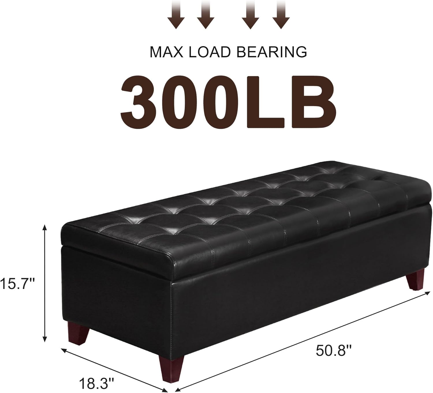 - 【Large Storage Space】This long storage ottoman has a big space to store your blankets, pillows,cloths, books, etc. Bench with storage Overall: 50.8 L x 18.3 W x 15.7 H inches; Interior Size: 46.9 L x 14.6 W x 9.1 H inches.