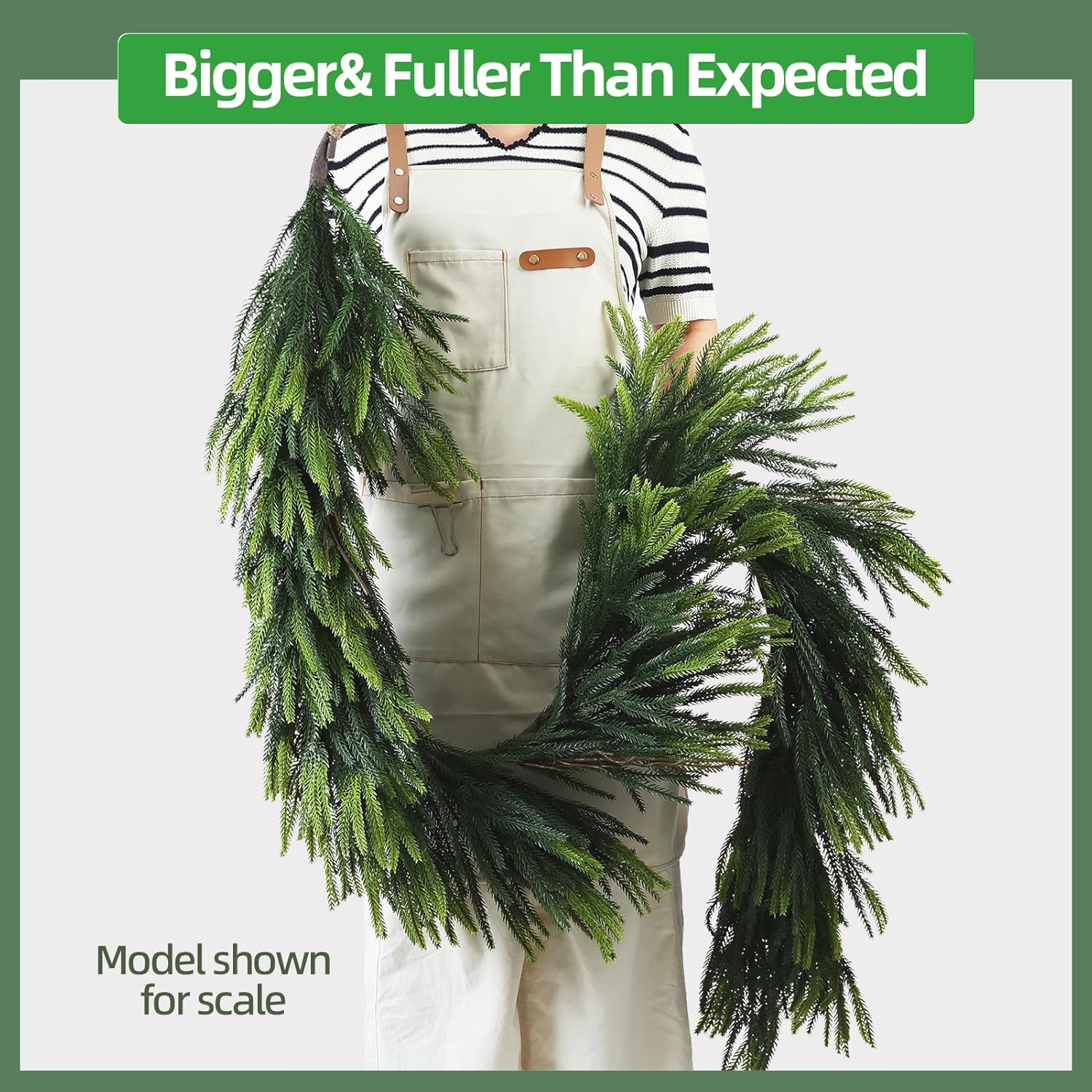 - 【Package & Size】 Includes 1 piece of 6FT Artificial Norfolk Pine Greenery Garland, designed for Christmas decorations. With extra-dense pine needles, it delivers a lush, premium look that enhances any space—perfect as a Christmas garland for indoor or outdoor holiday décor.