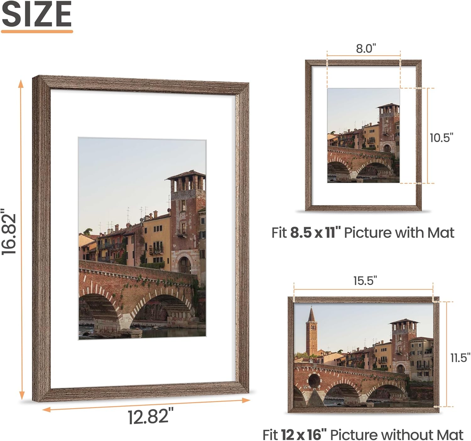 upsimples 12x16 Picture Frame, Natural Solid Wood Picture Frames, Display 8.5x11 with Mat or 12 x 16 Without, Vertical & Horizontal Wall Hanging, 1 Pack, Brown